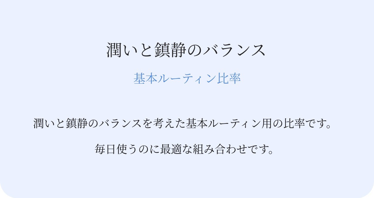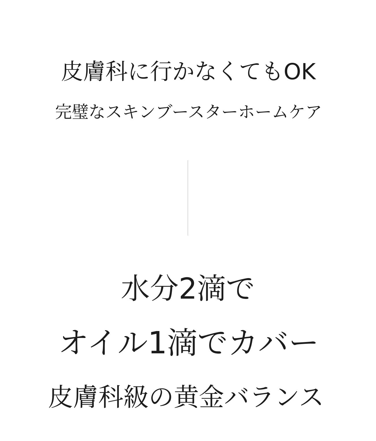 例)脂性肌&朝のルーティン:2スポイト/普通肌&デイリールーティン:6スポイト/乾燥肌&夜のルーティン:8スポイト