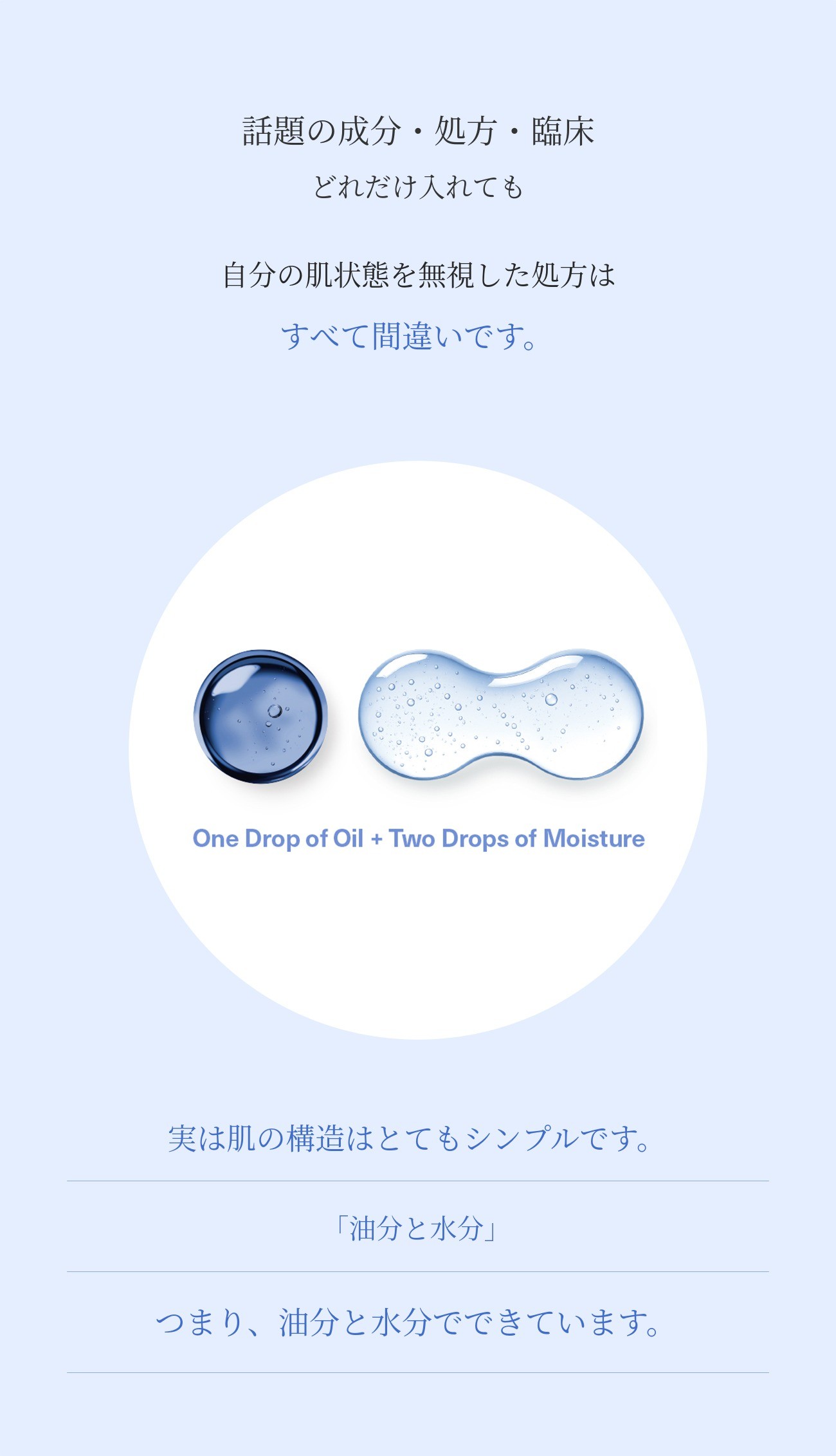 実は私たちの肌の構造もシンプルです。油分と水分でできていて、理想的な化粧品はその構造を真似て油水分バランスをうまく整えた製品です。