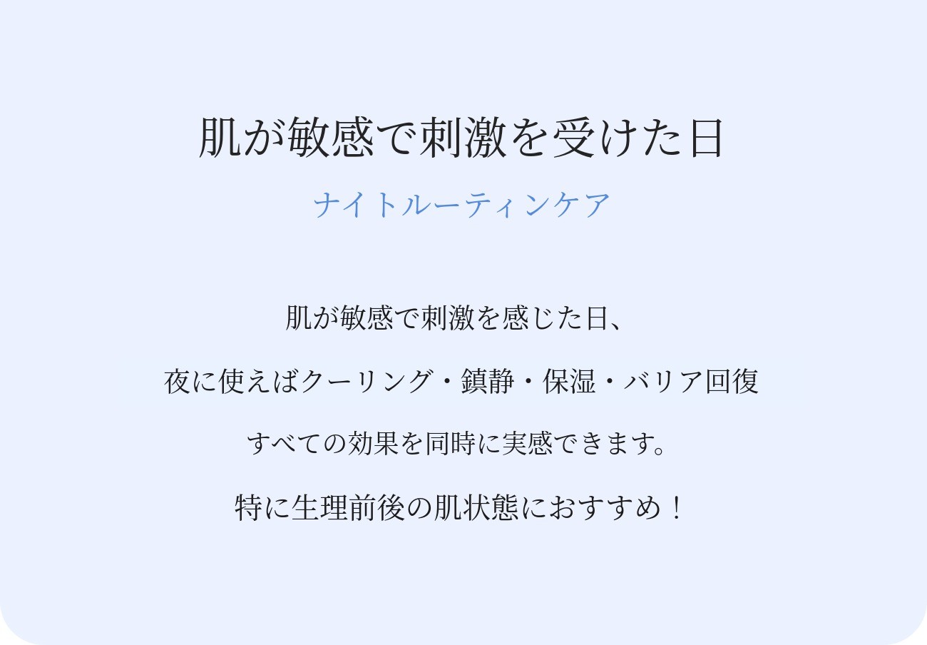 - 肌バリアが弱まったときに起こる炎症反応を抑制し 敏感肌に適しています。