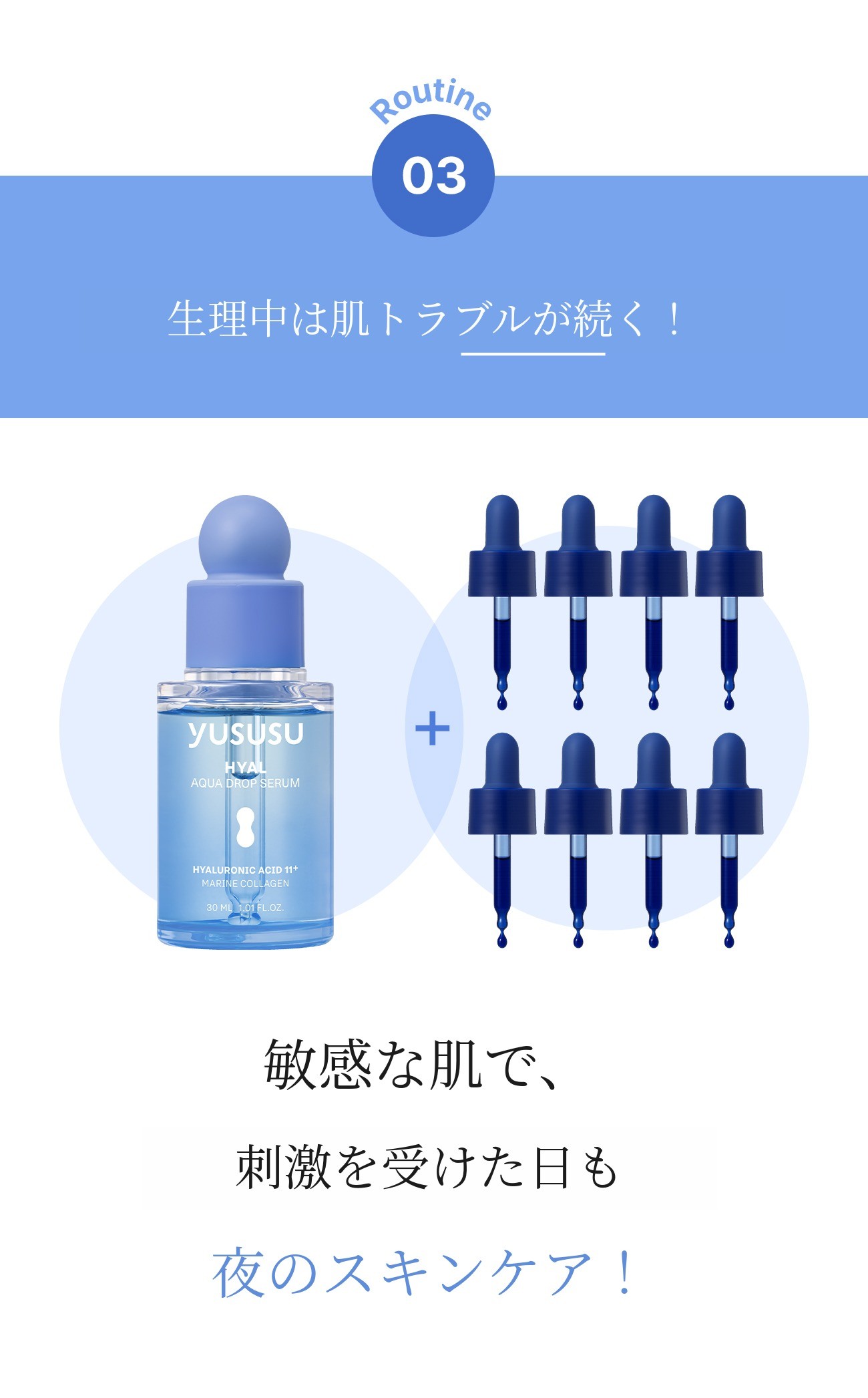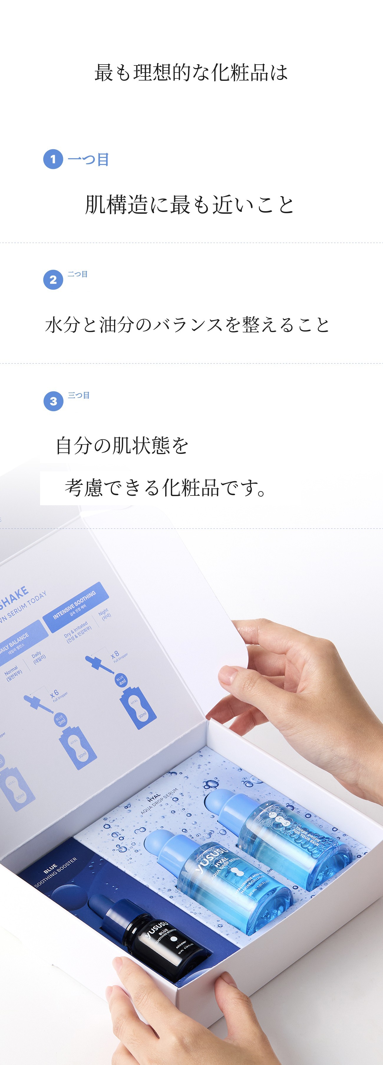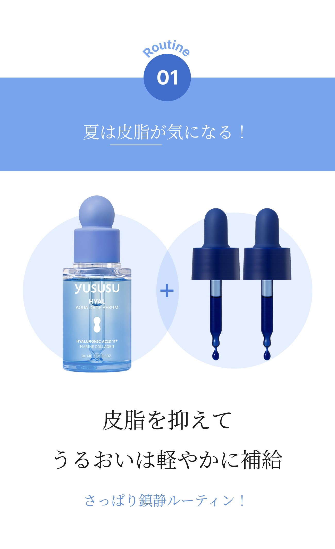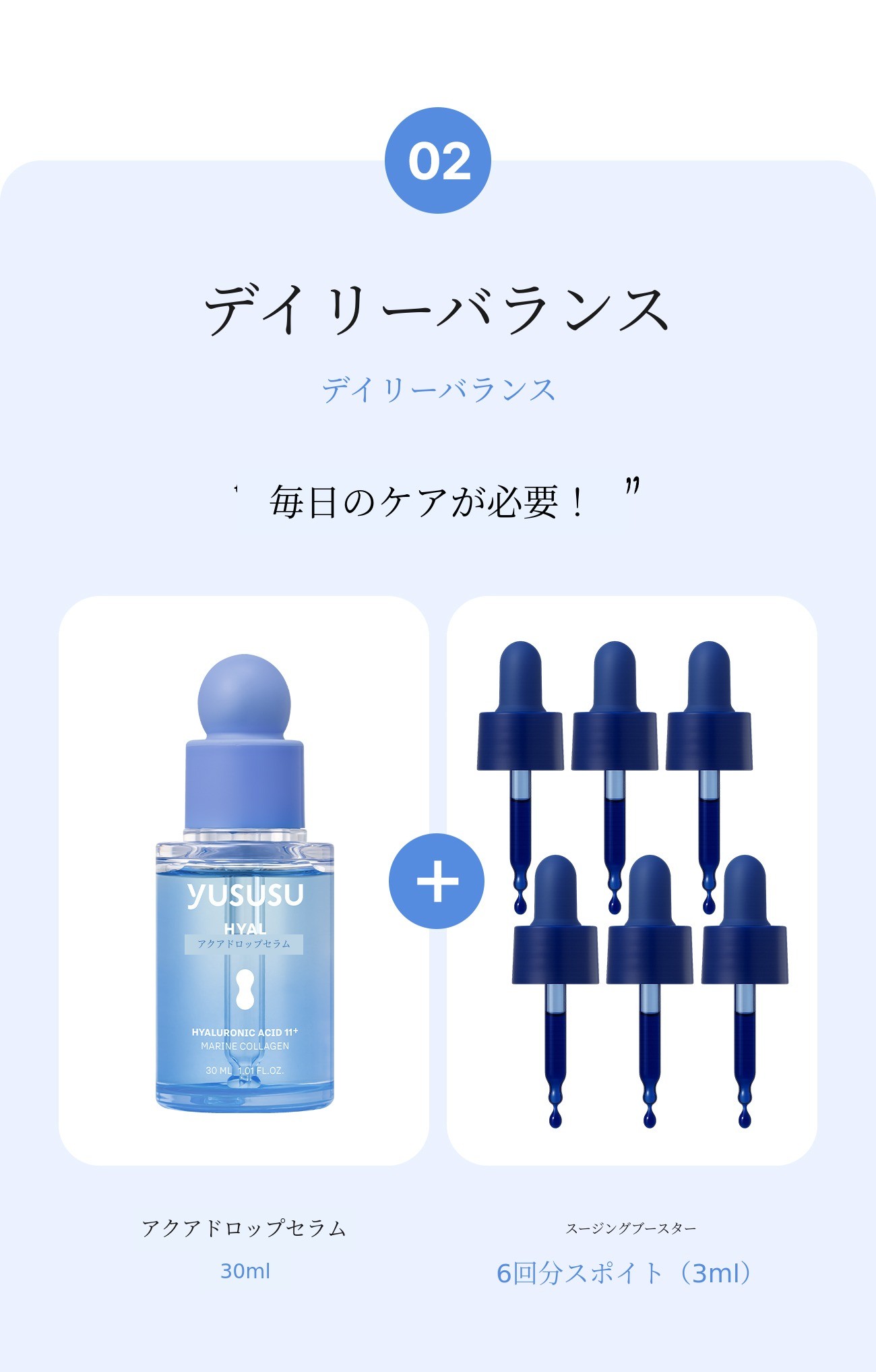 ユススは油分1滴、水分2滴、私の肌に最も似た3滴を込めたブランドです。 皮膚科専門家の処方に基づいた油水分の精巧な調整で、私の肌にぴったりのバランスを提供します。