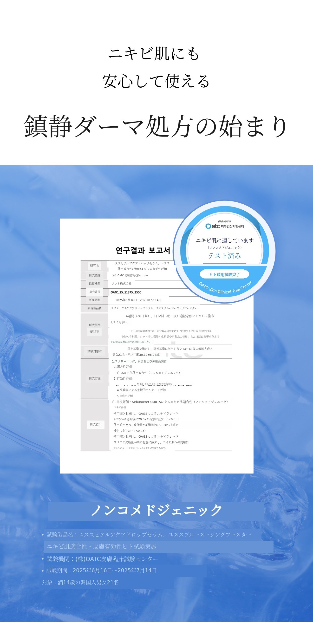 A. はい!ユススはノンコメドジェニックテストおよび敏感肌対象低刺激テストをすべて完了した製品です。 ニキビ誘発成分なしで鎮静に特化しているので、安心してご使用いただけます。