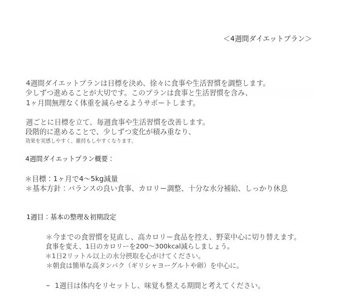 <[プレミアム]4週間ダイエットプランプレビュー>