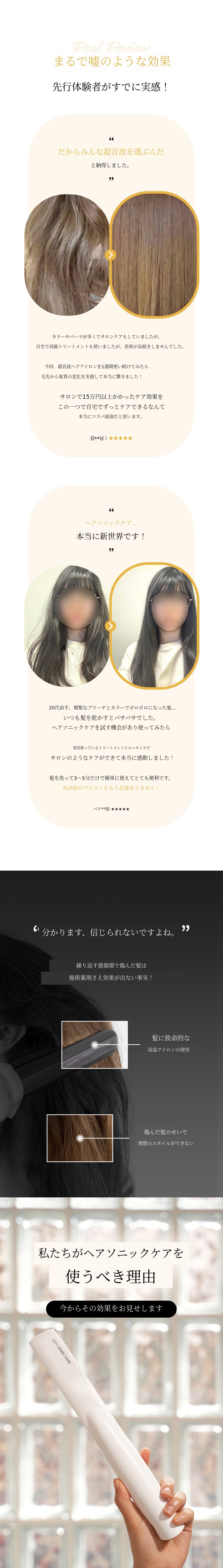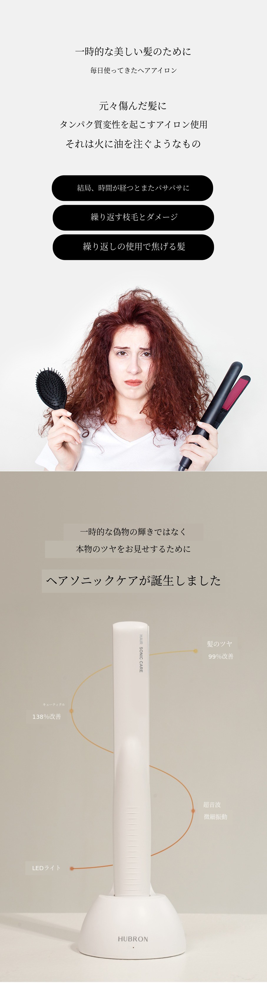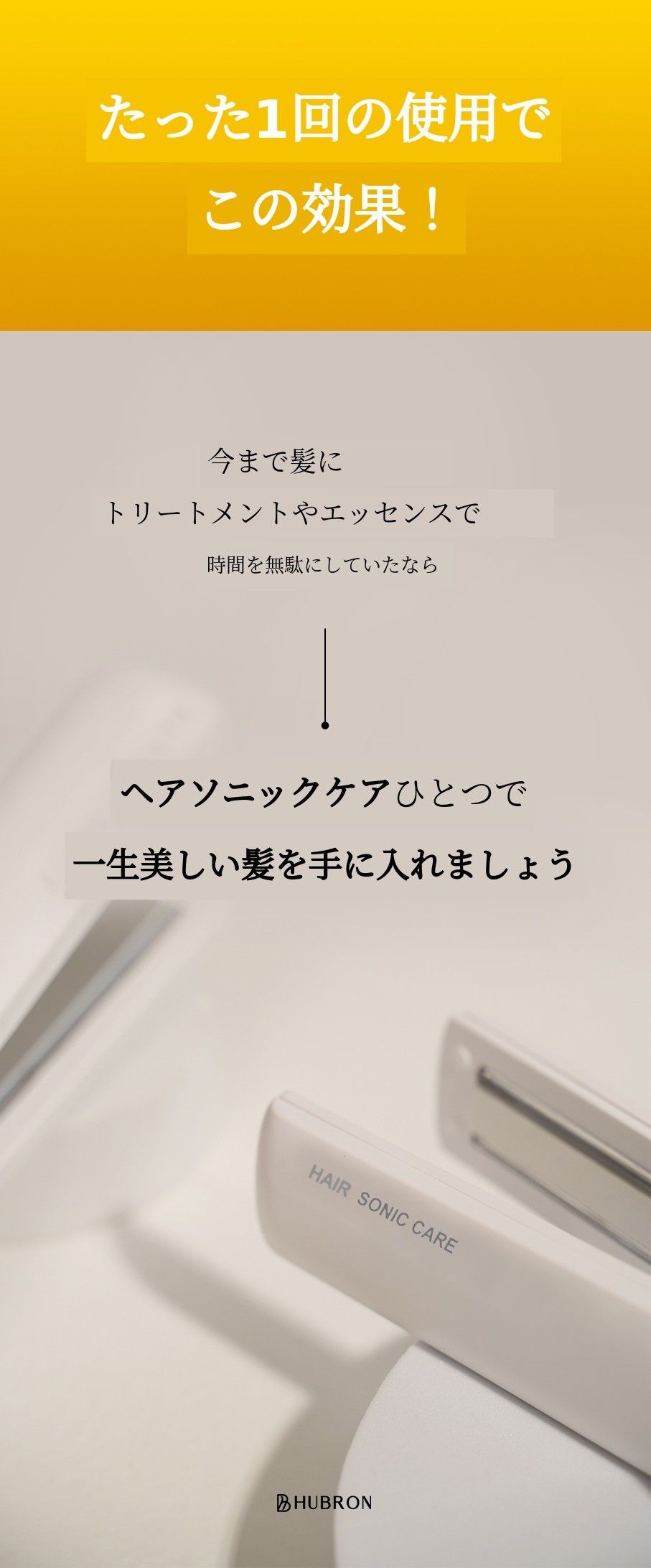 ヒューブロンが紹介するヘアソニックケアは、日本で話題になった髪質改善のための超音波デバイスの効果をそのままサポーターの皆様にご紹介するために誕生したヘアデバイスです。