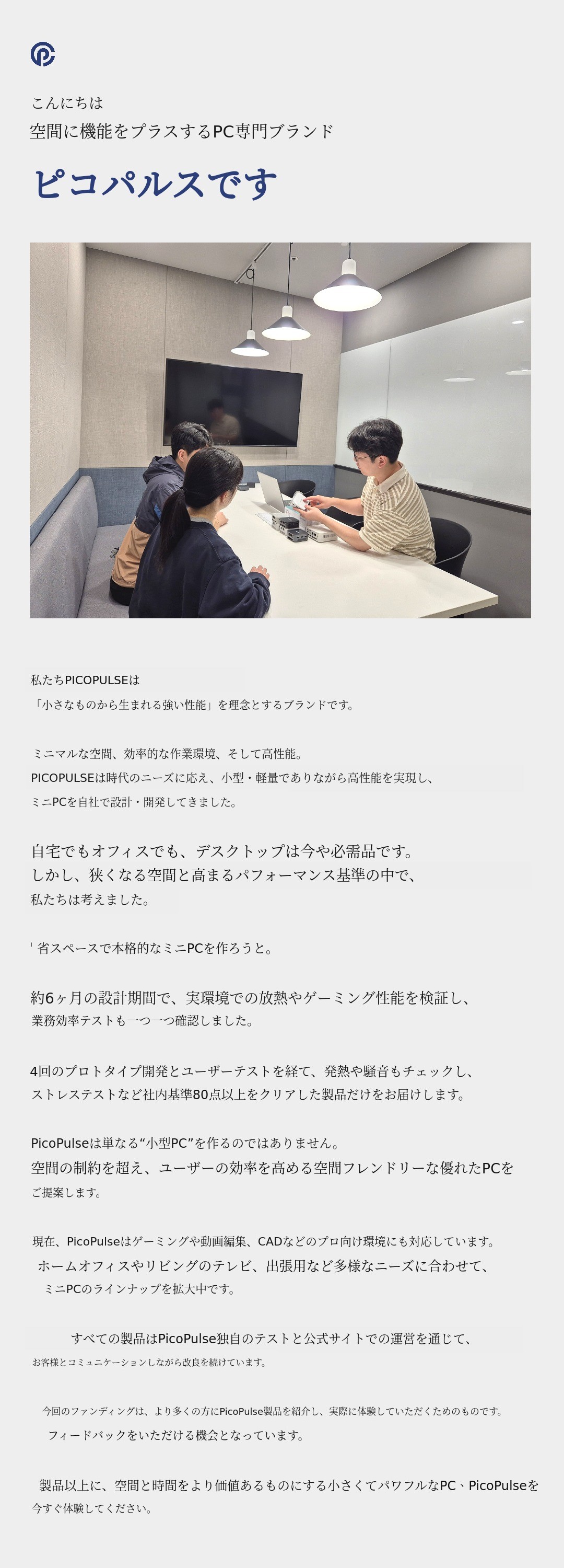 ピコパルスの物語をこれからサポーターの皆様と共に歩みたいです