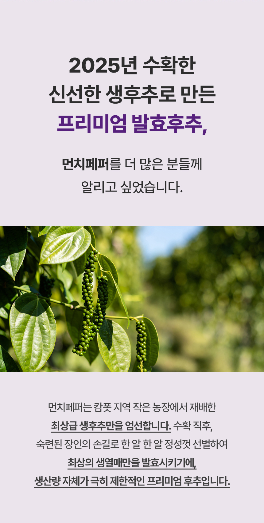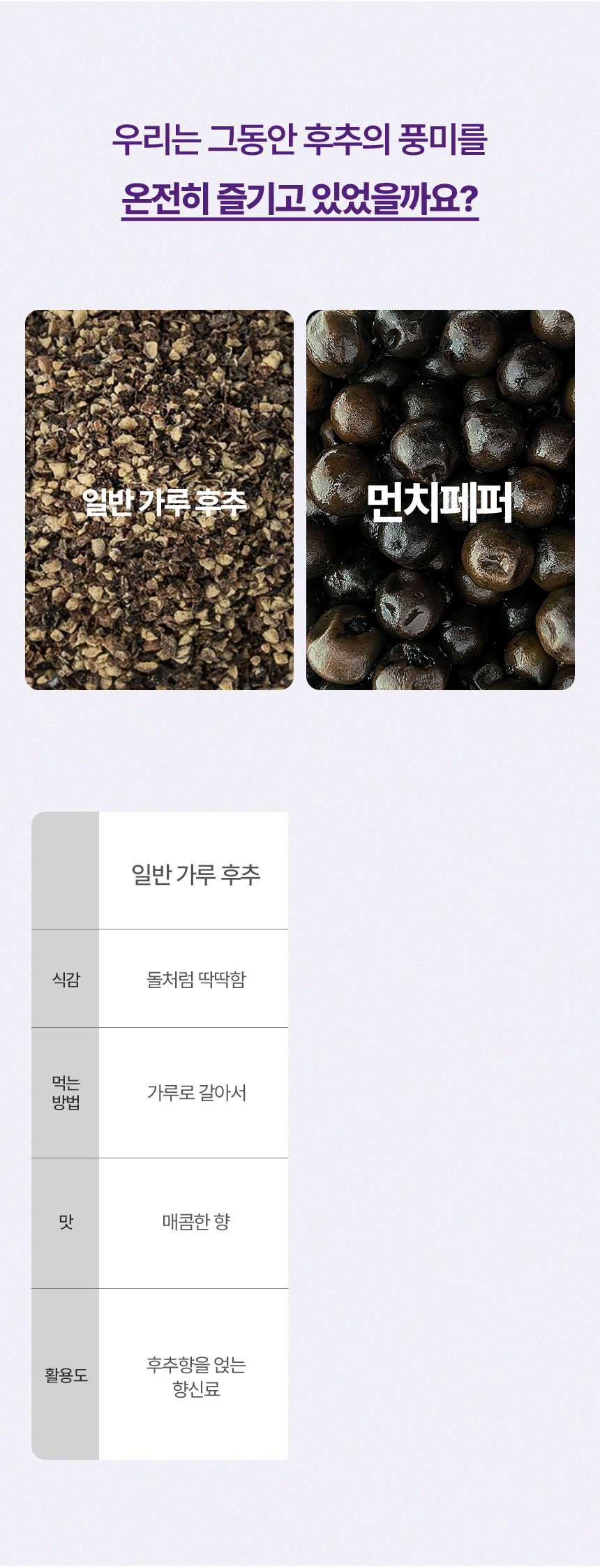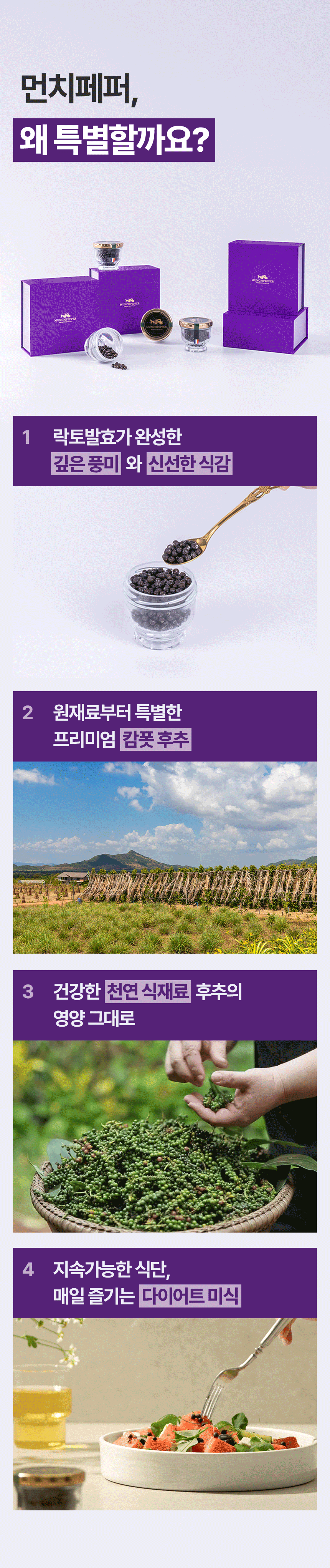 그 첫 번째 컬렉션이 바로, 과즙이 터지는 발효후추 ‘먼치페퍼’입니다.