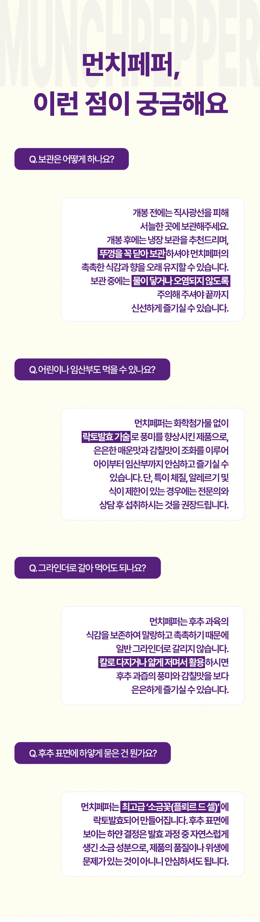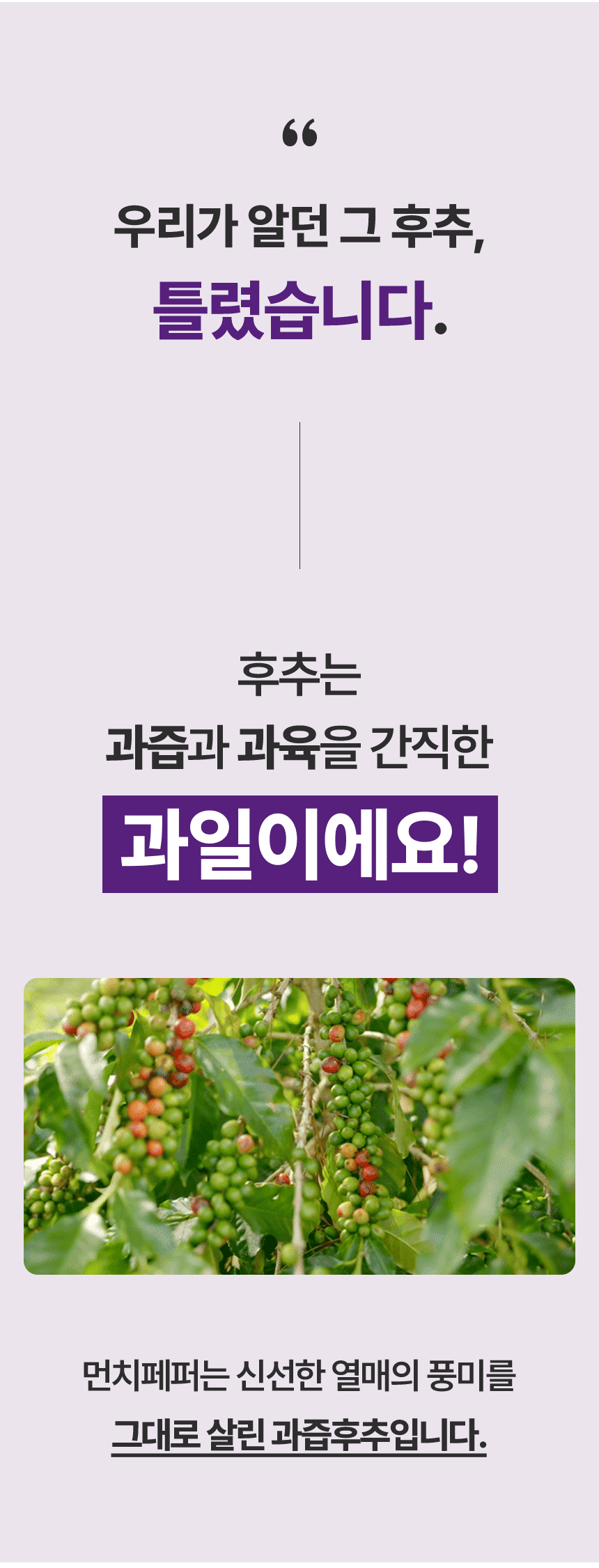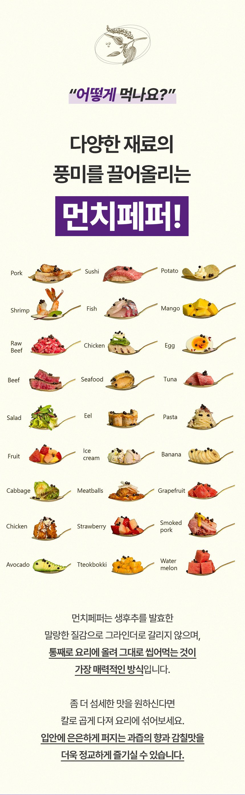 그 첫 번째 컬렉션이 바로, 과즙이 터지는 발효후추 ‘먼치페퍼’입니다.
