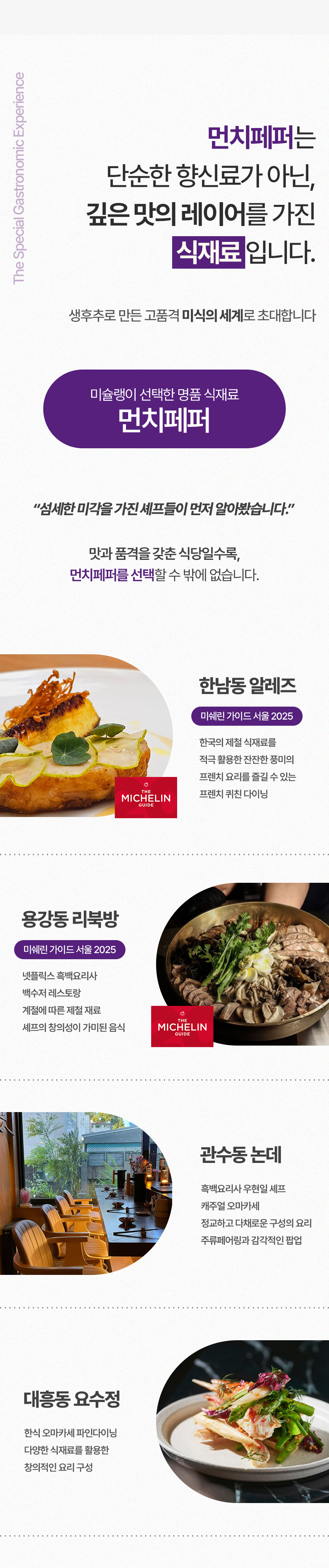 먼치페퍼는 이미 다양한 셰프와 고객들에게 사랑받고 있는 프리미엄 발효후추지만,