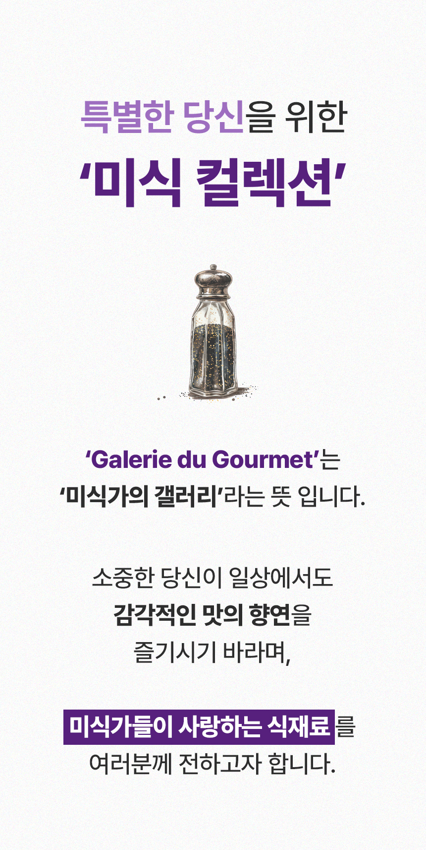 세상에 하나뿐인 풍미를 담은 프리미엄 식재료를 큐레이션합니다.
