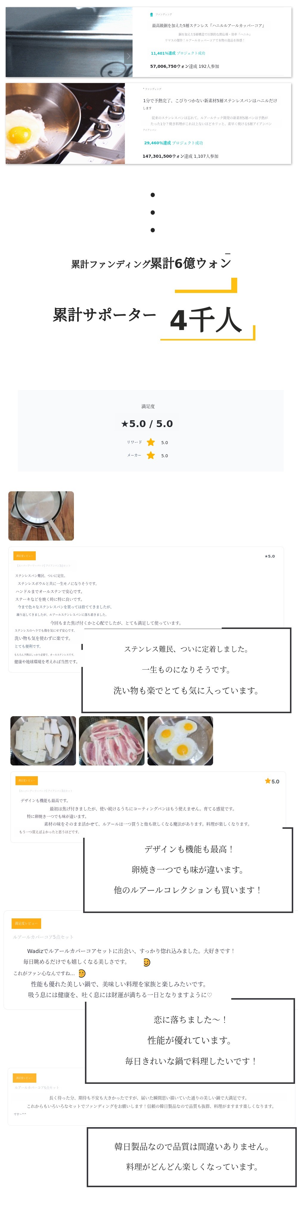 お客様の高い満足度を最優先目標に、韓国プレミアムキッチン製品の普及だけでなく、革新技術を盛り込んだ新しい次世代調理器具を開発しています。これまで我が国はドイツのキッチン用品など先進国製品のOEM生産国と見なされてきましたが、今後は未来をリードできる主役へと飛躍できることを願っています。ハンイルプリマスが初めて開発したアイアンコアWadizファンディング金は、今後の研究開発に大きな力となるでしょう。