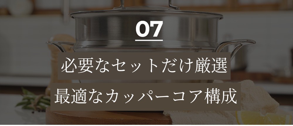 温かい料理を長く楽しめるように!熱を長時間保持する能力に優れたカッパーコア