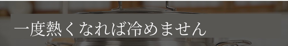 さっきまで調理用鍋として使っていたものが、テーブルに上がる瞬間に高級な器へと変身します。カパーコアの特性上、少ない熱でも長時間熱を保ちます。そのため、ウォーマーの火だけでも長く冷めない食事を楽しめます。