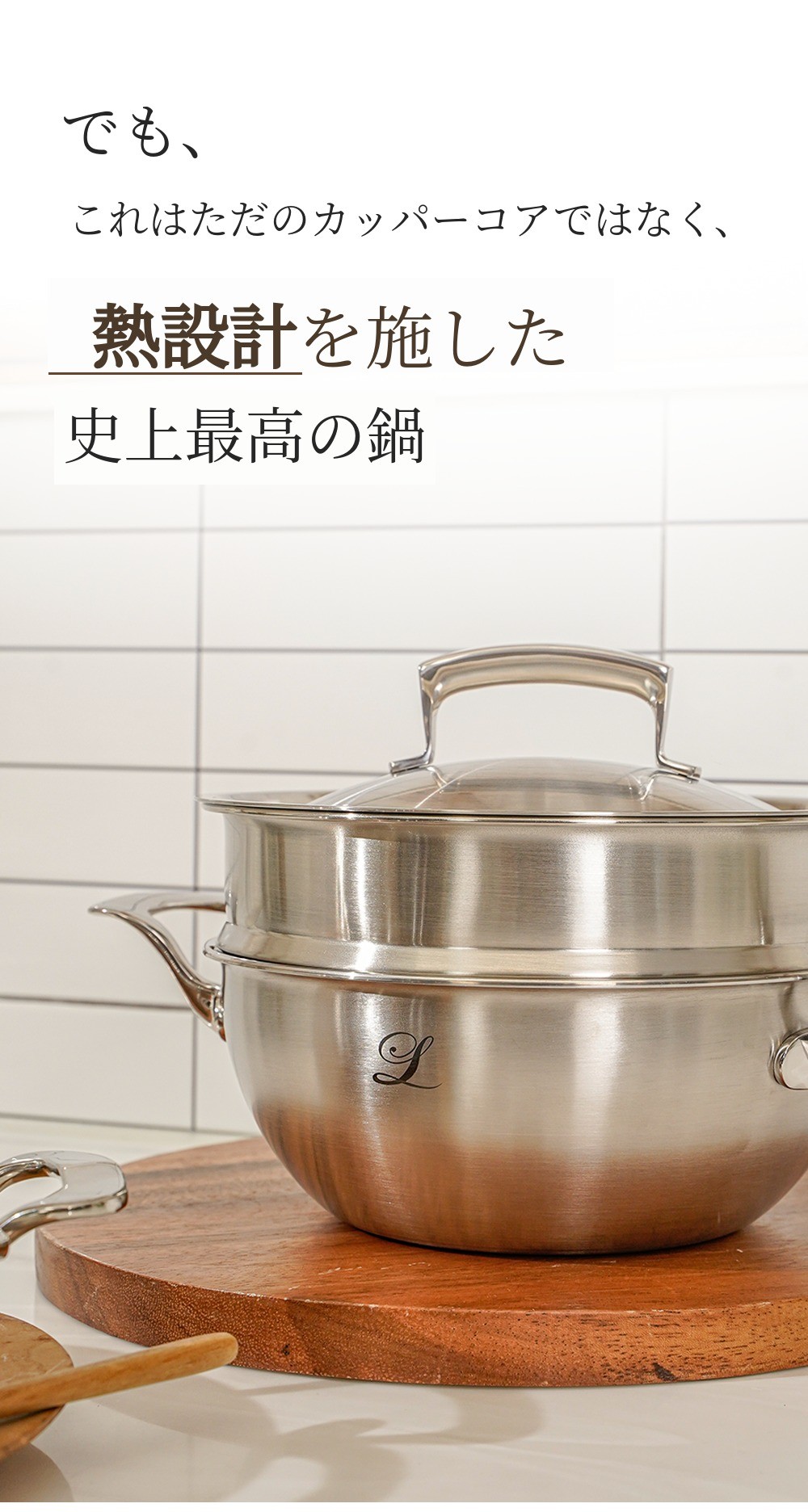 カッパーコアを使う方なら誰もが共感する重み。この重みが不便にならないように。すべてのデザインは両手鍋型で製作され、手首への負担を減らし、より頻繁に使いたくなる調理道具に仕上げました。