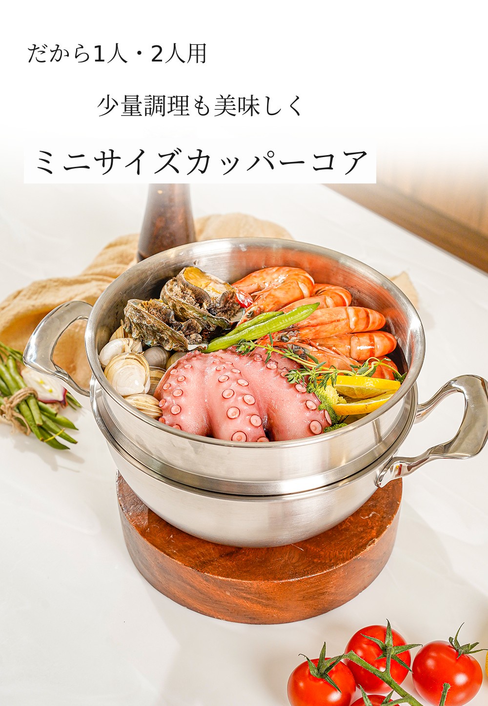 プチサイズのカッパーコアセットがあれば、どんな料理もすぐに美味しく作れます。