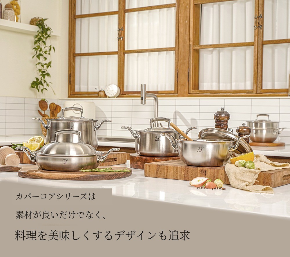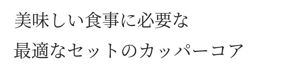 ミニサイズの煮込み鍋から、鍋、ウォックまで多様な構成。1~2人用の一食に適した構成から、さまざまな料理に活用できる鍋料理用まで。カッパーコアを存分に楽しめる構成だけをご用意しました。