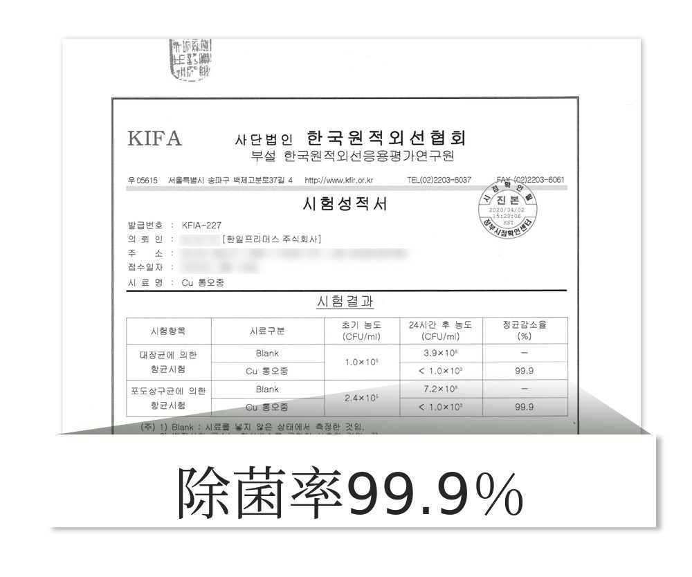 カッパーコアは99.9%の抗菌効果まで持っています。銅が含まれたバンジャユギと同じ99.9%の静菌効果