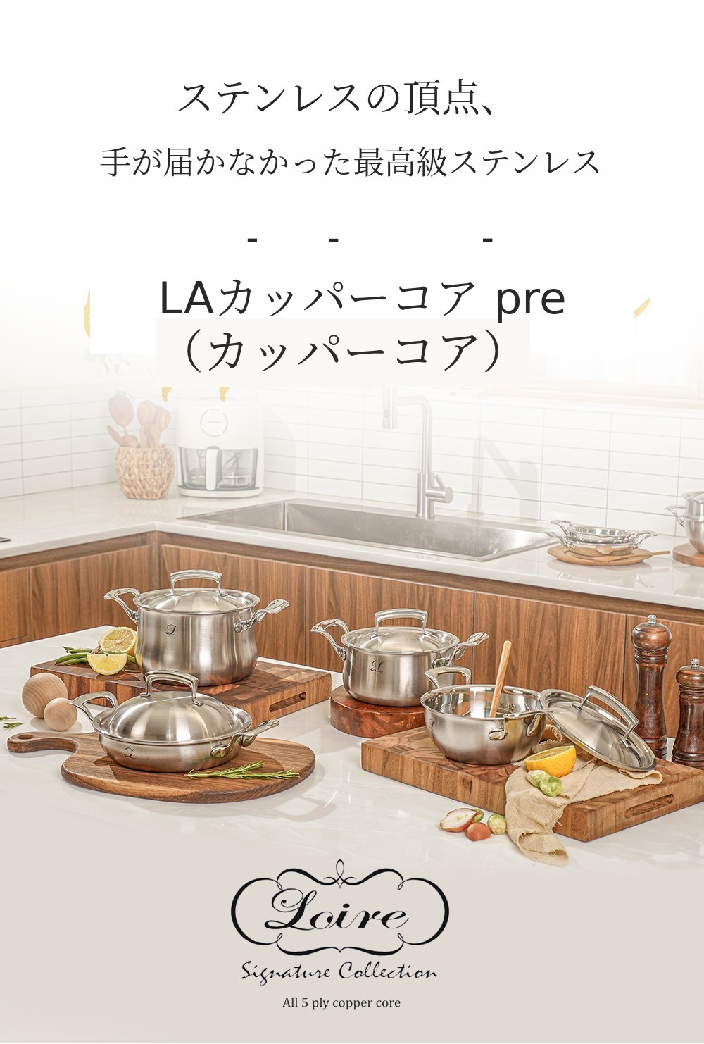 銅はメダル、航空機の着陸ギア、管楽器などに使用されています。つまり、銅素材は非常に高価で管理が難しく、一般的に購入しにくい素材です。特に、一般的な銅鍋は場所による熱伝導の問題や熱変色による管理が難しいですが、ルアールカッパーコアは銅を内側に配置し、熱効率と管理の問題を同時に解決しました。
