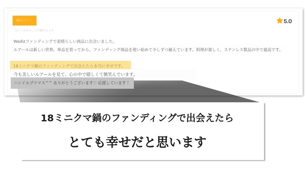 最初のWadizプロジェクトでご縁をいただいたサポーターの皆様の貴重なフィードバックがあったからこそ可能でした。