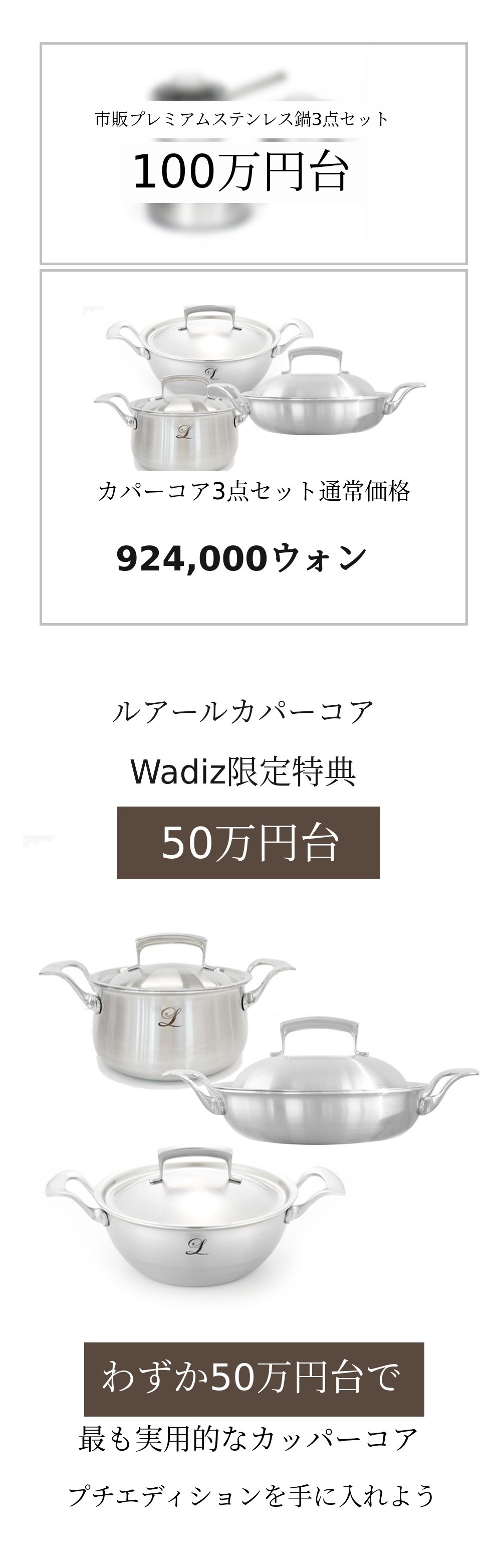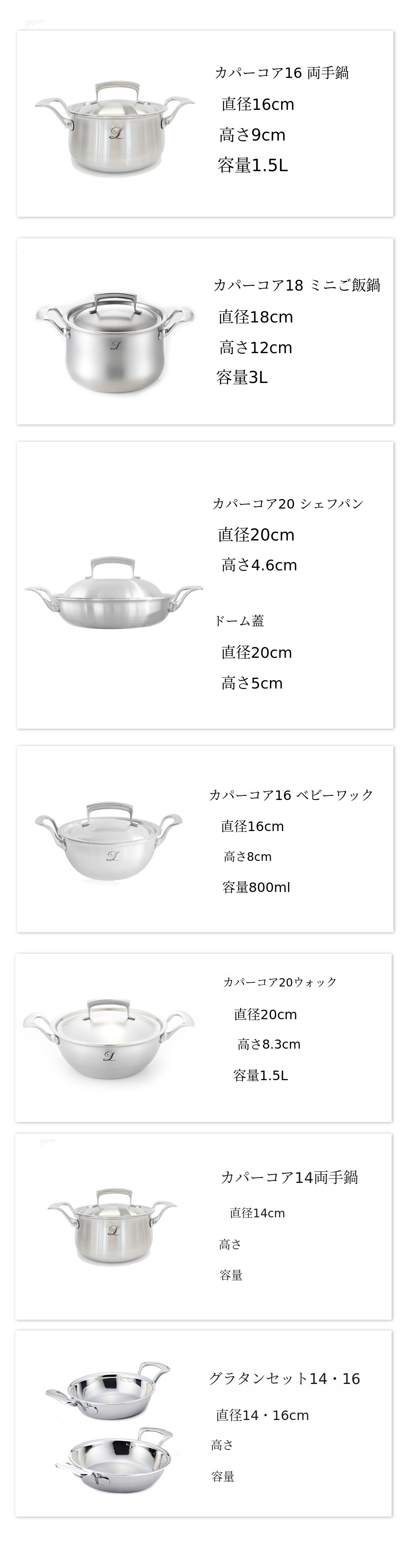今回のプチサイズカパーコアは、よく見ると一般的な鍋やフライパンセットとは違うことに気づくでしょう。