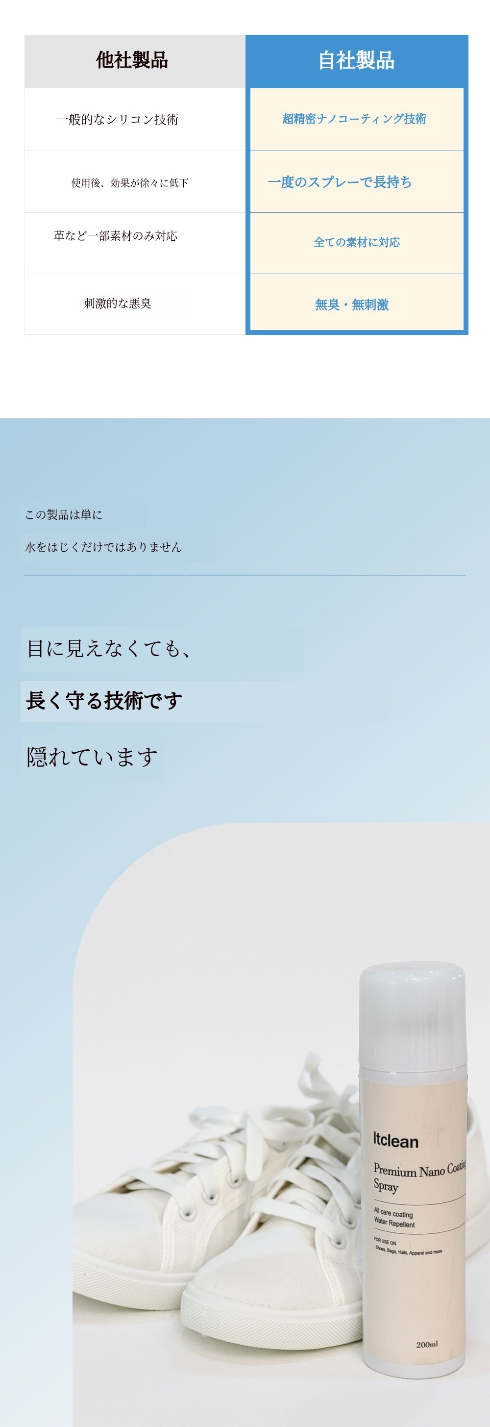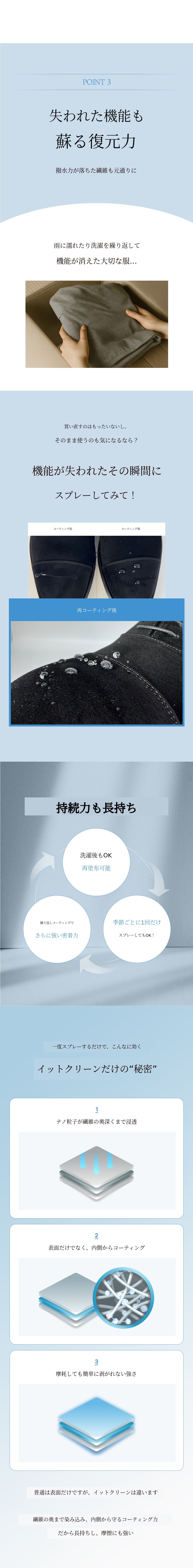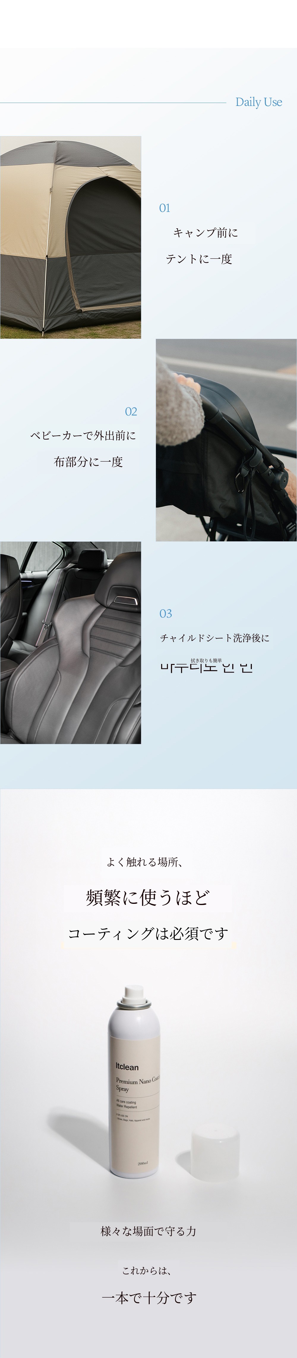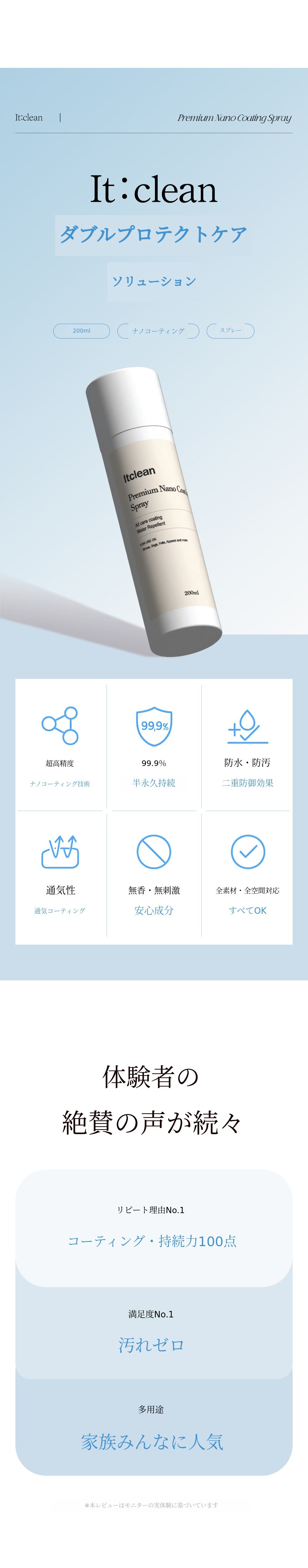 1. 💧 1年持続の撥水・防汚コーティング - 1回の塗布で1年間水や汚れを防ぎます 2. 🥿 多様な素材と空間に対応 - 靴、バッグ、衣類から車やテントまで使用可能です 3. 🎁 割引とプレゼント付き - 最大50%割引と靴用消臭剤の贈呈があります