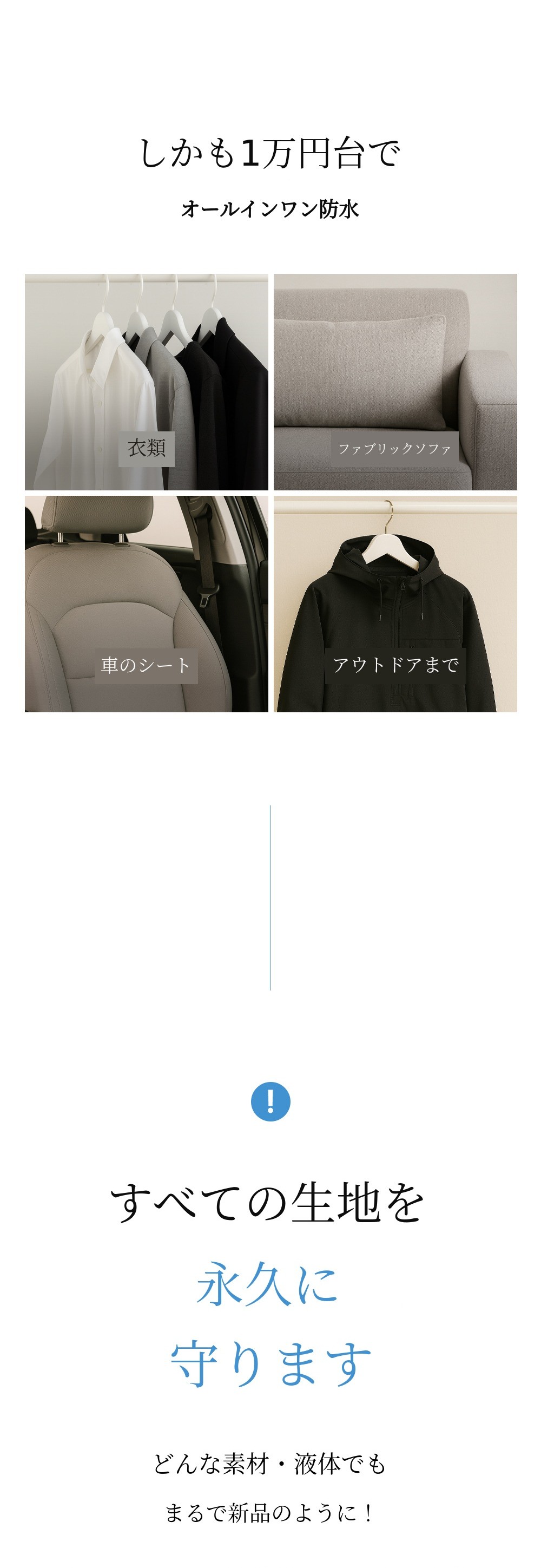 二重コーティング|どんな素材・空間でもOK なんと1年間持続する撥水・防汚ケア!