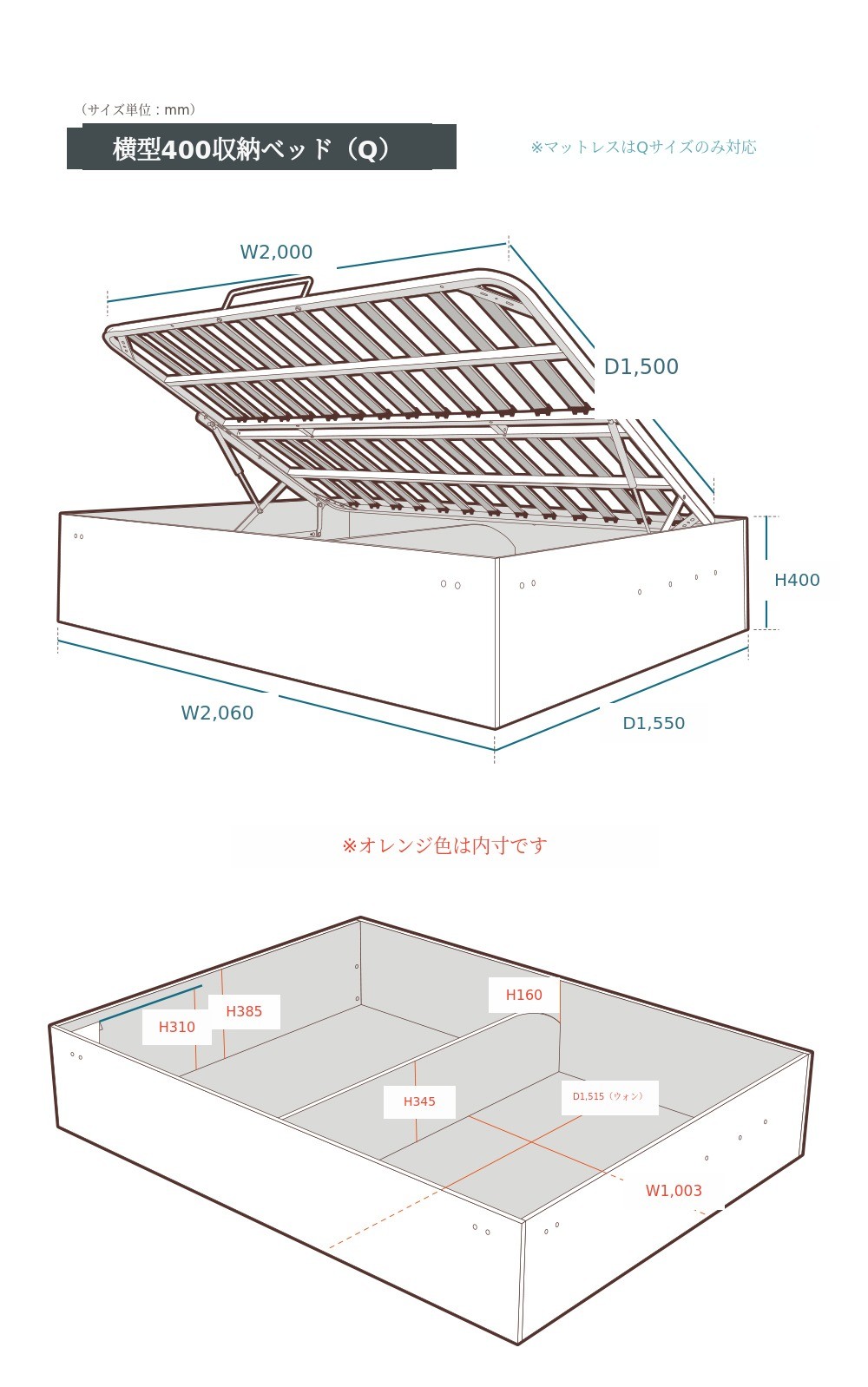 -リフトアップ横型(400/600)収納ベッドQ:首都圏/京畿(50,000ウォン) | 地方(60,000ウォン)