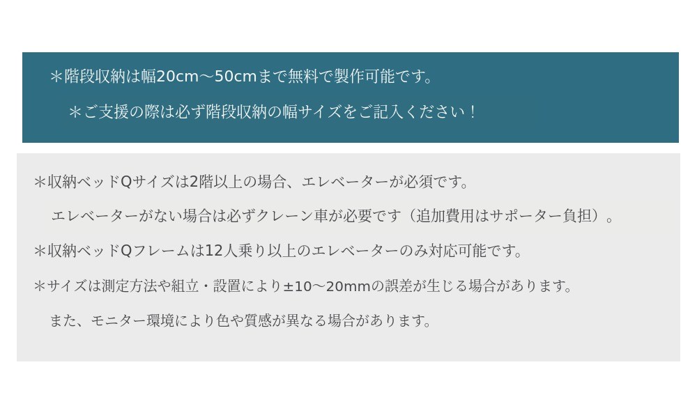 (* クイーンサイズのすのこの場合、エレベーターは12人乗り以上のみご利用いただけます。)