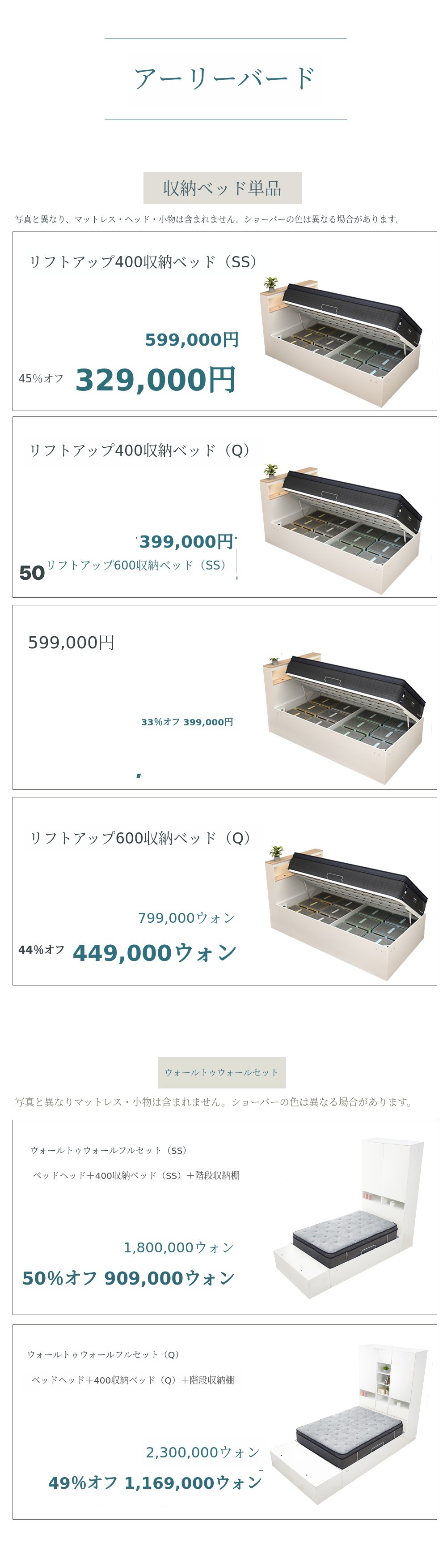 -ウォルトゥウォル フルセット(収納ベッドQ):首都圏/京畿(130,000ウォン) | 地方(150,000ウォン)