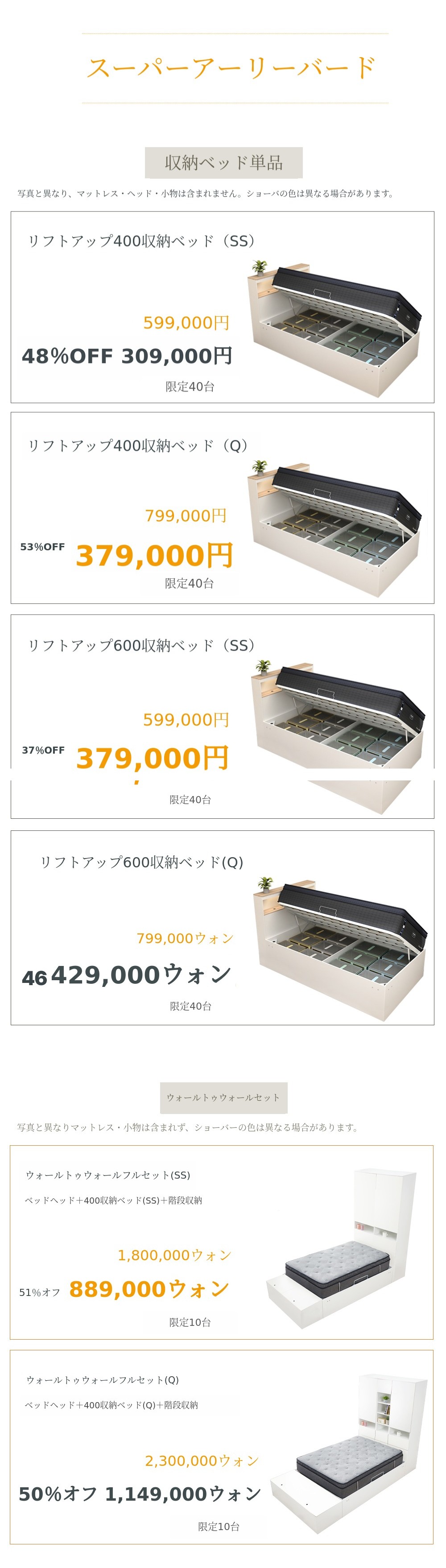 -リフトアップ横型(400/600)収納ベッドSS:首都圏/京畿(40,000ウォン) | 地方(50,000ウォン)
