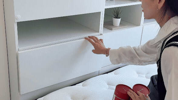 クローゼットと収納棚になった新概念のベッドヘッド!
