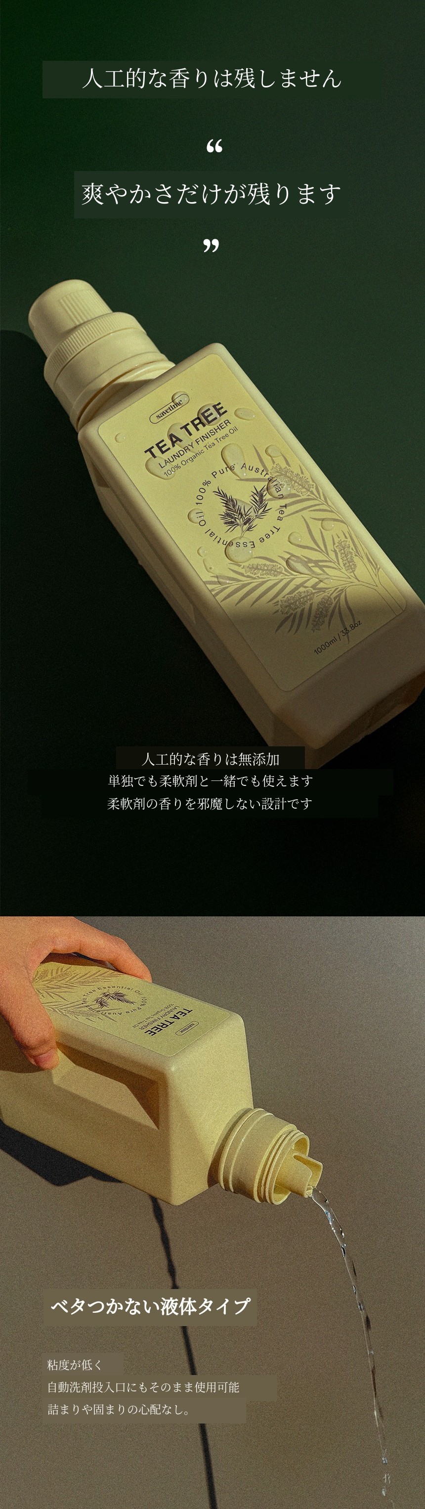 1. 🌿 天然ティートリー洗濯仕上げ剤 - 100%天然成分で洗剤残留物を除去し抗菌・消臭効果があります 2. 🧺 洗濯仕上げの革新的ソリューション - 洗剤残留物と菌を除去し快適な洗濯物を維持します 3. 💸 本品と詰替セット割引 - 本品と詰替セットを最大39%割引で提供します