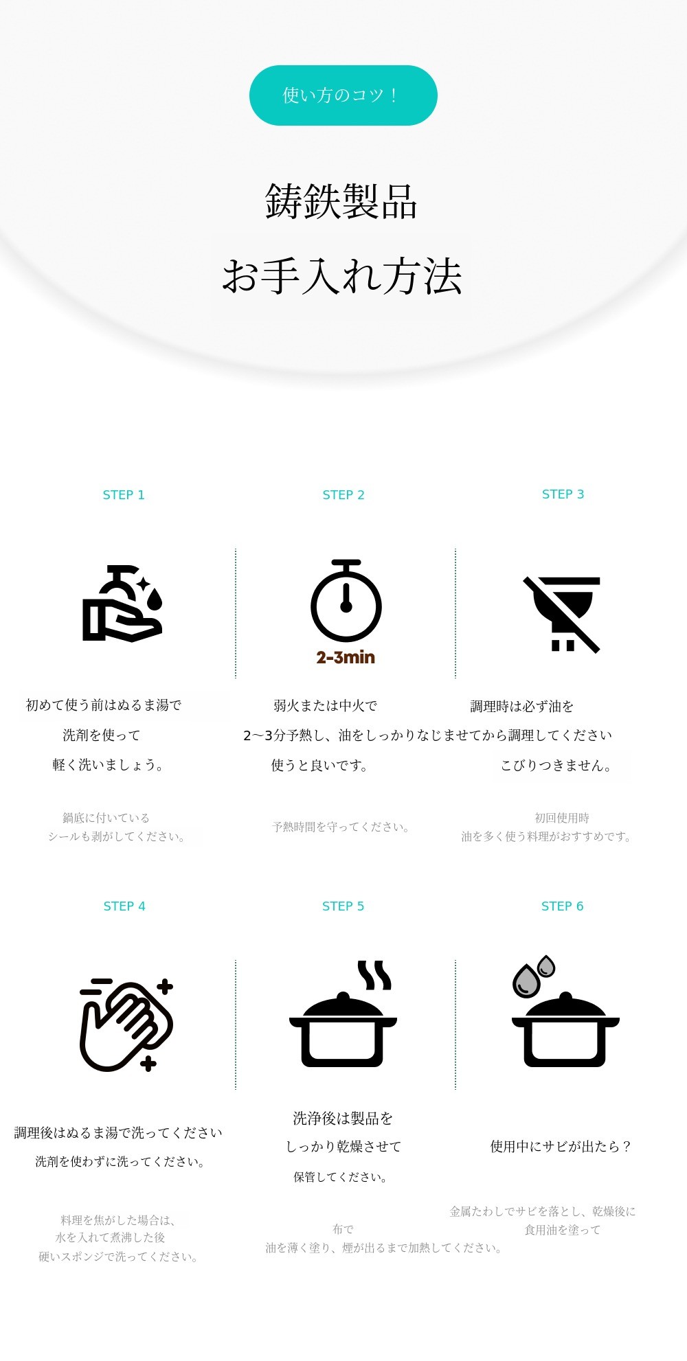 心配なく使える鋳鉄フライパン一つ。スープや鍋料理を安心して作れる鋳鉄鍋一つ。ふっくら美味しい白ご飯を炊ける鋳鉄炊飯器一つ。こうして私たちは始めました。