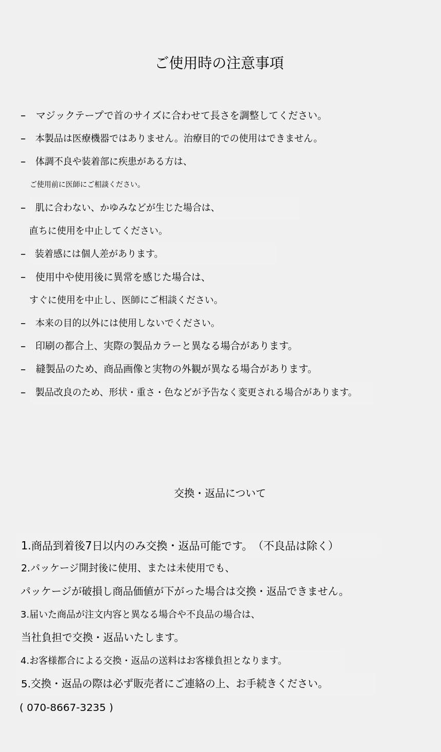 1. 単一サイズで製作されているため、サイズ交換はできず、ファンディング金返金の理由にはなりません。