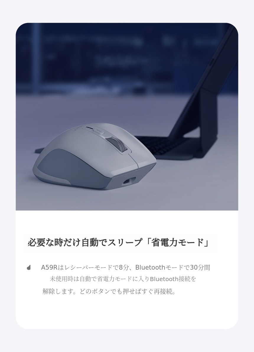 機器ごと、使用するたびにマウスを探してレシーバーを差し替える必要はありません。合計3台を同時に接続でき、ボタン一つで現在接続されている機器を切り替えることができます。