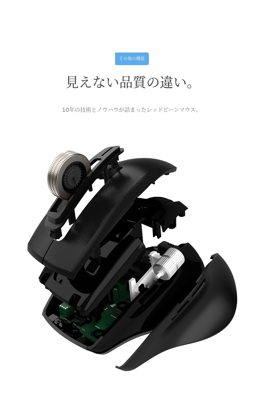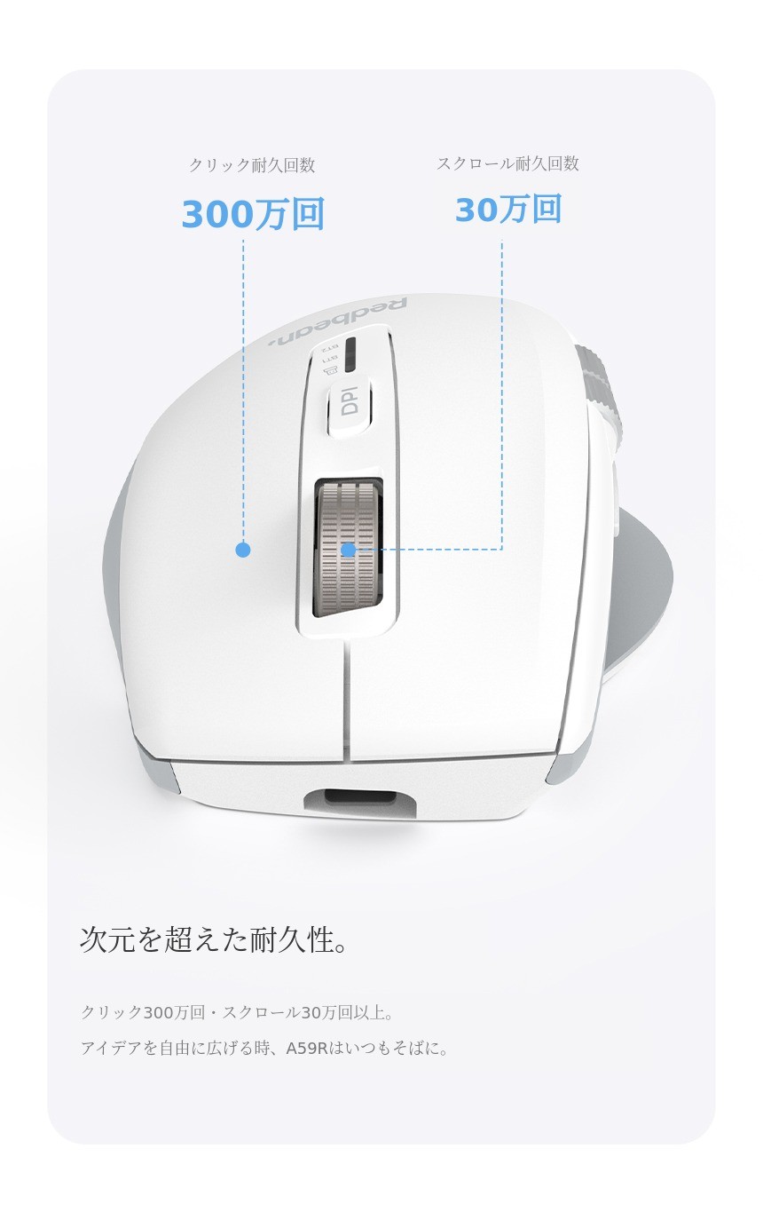 長く手に馴染んで使えるように。クリック可能回数は300万回、スクロールはなんと30万回。信頼のレッドビーンだからこそ可能です。しっかりとした耐久性で、良いマウスを長くお使いください。