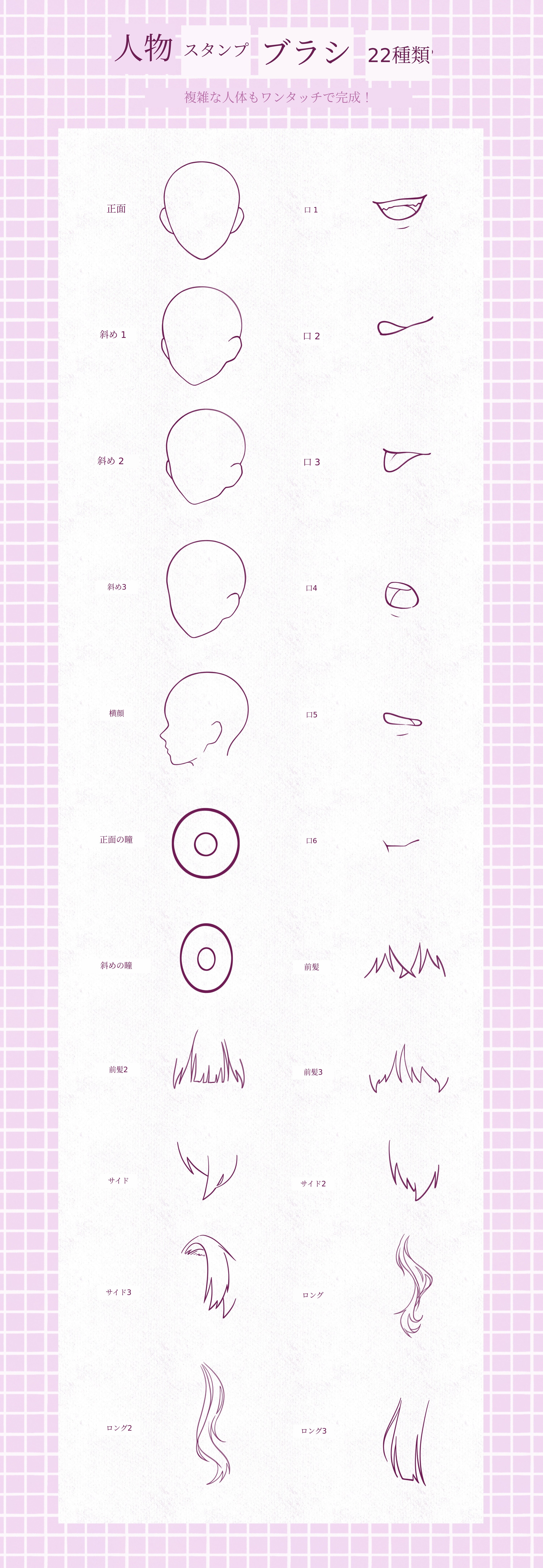 簡単に人物を完成できるスタンプブラシも含まれています!