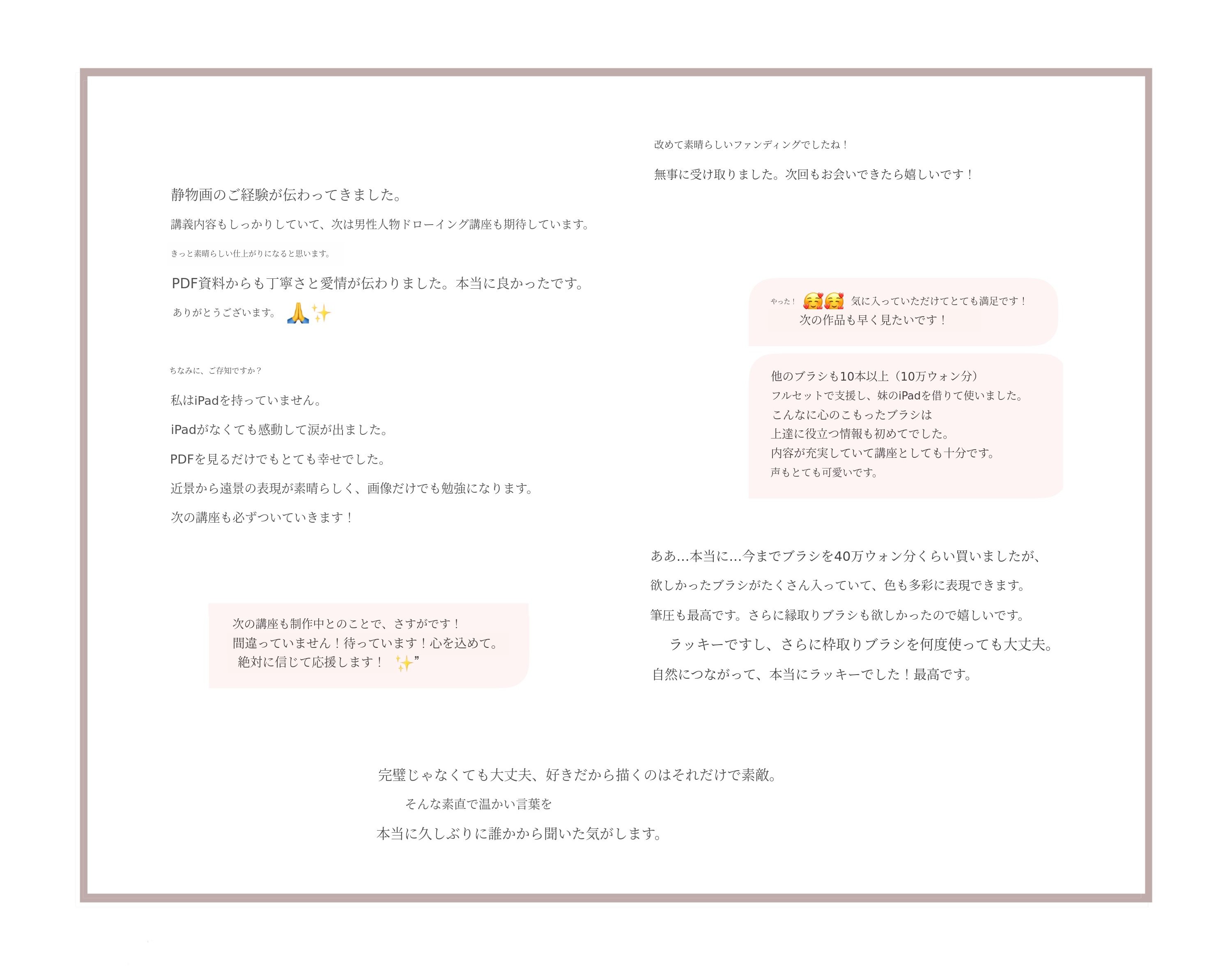 今回のプロジェクトは、絵を描きたくなる気持ちになってほしいという思いで準備しました!かつて好きだったけど離れてしまった方や、始めるのが難しかった方も、このセットで絵を描く幸せを感じていただけたら嬉しいです