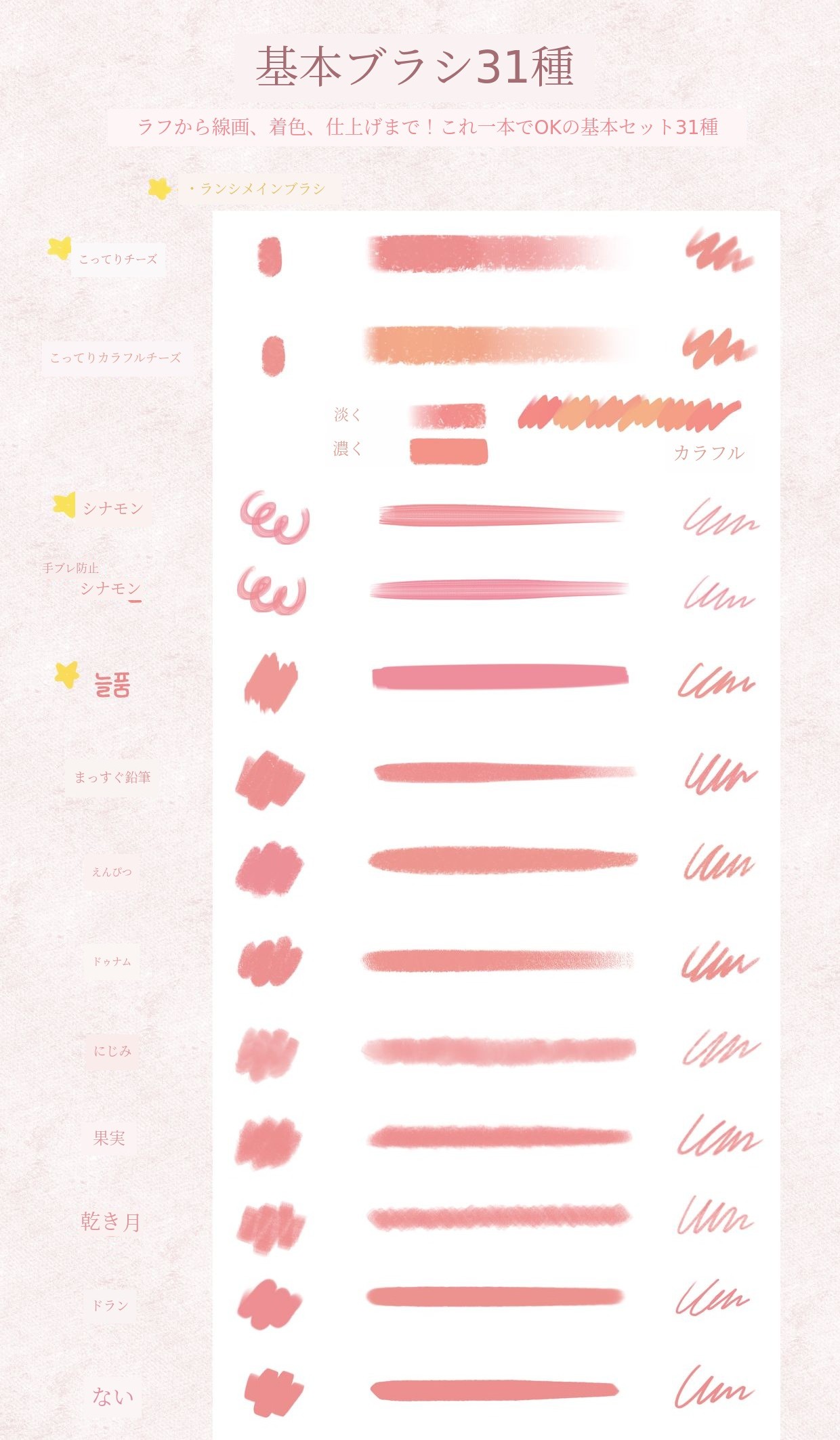 ブラシとスタンプ、イラストのコツとガイド、クラスまで
