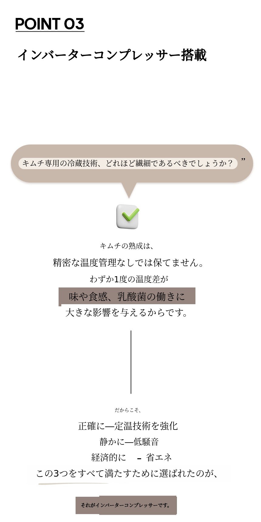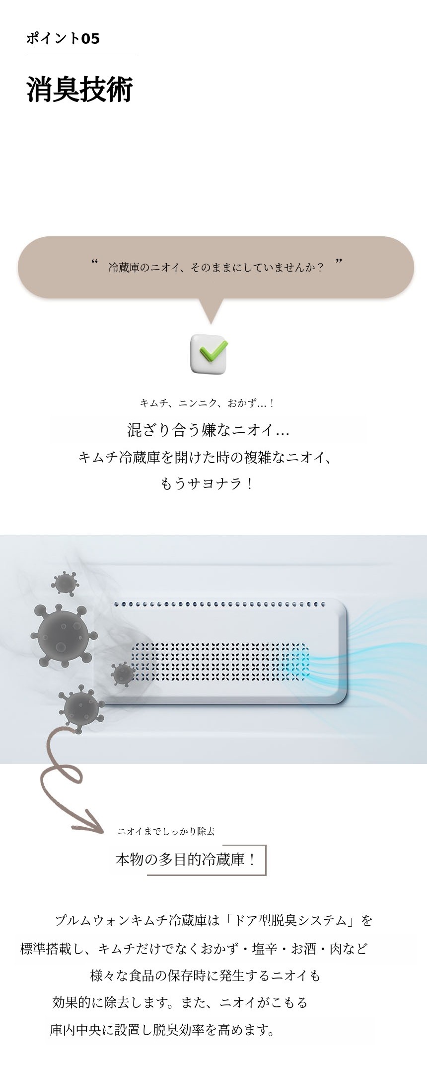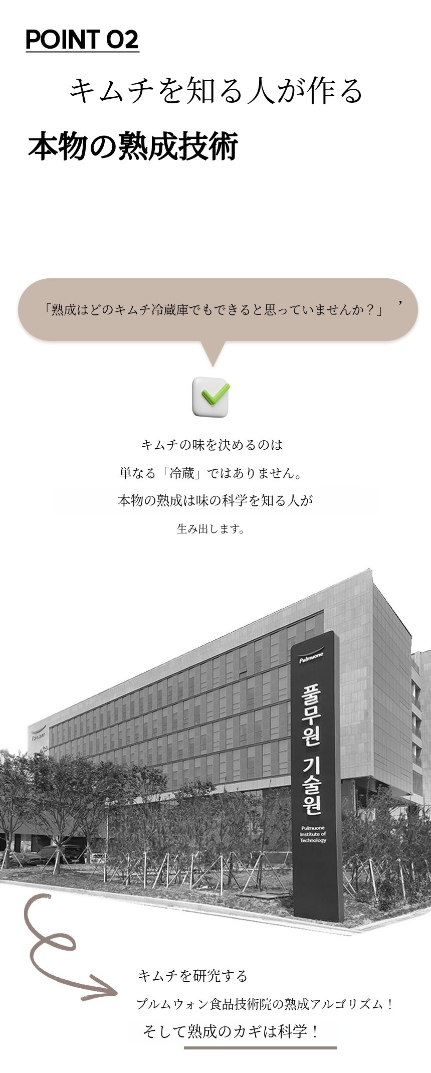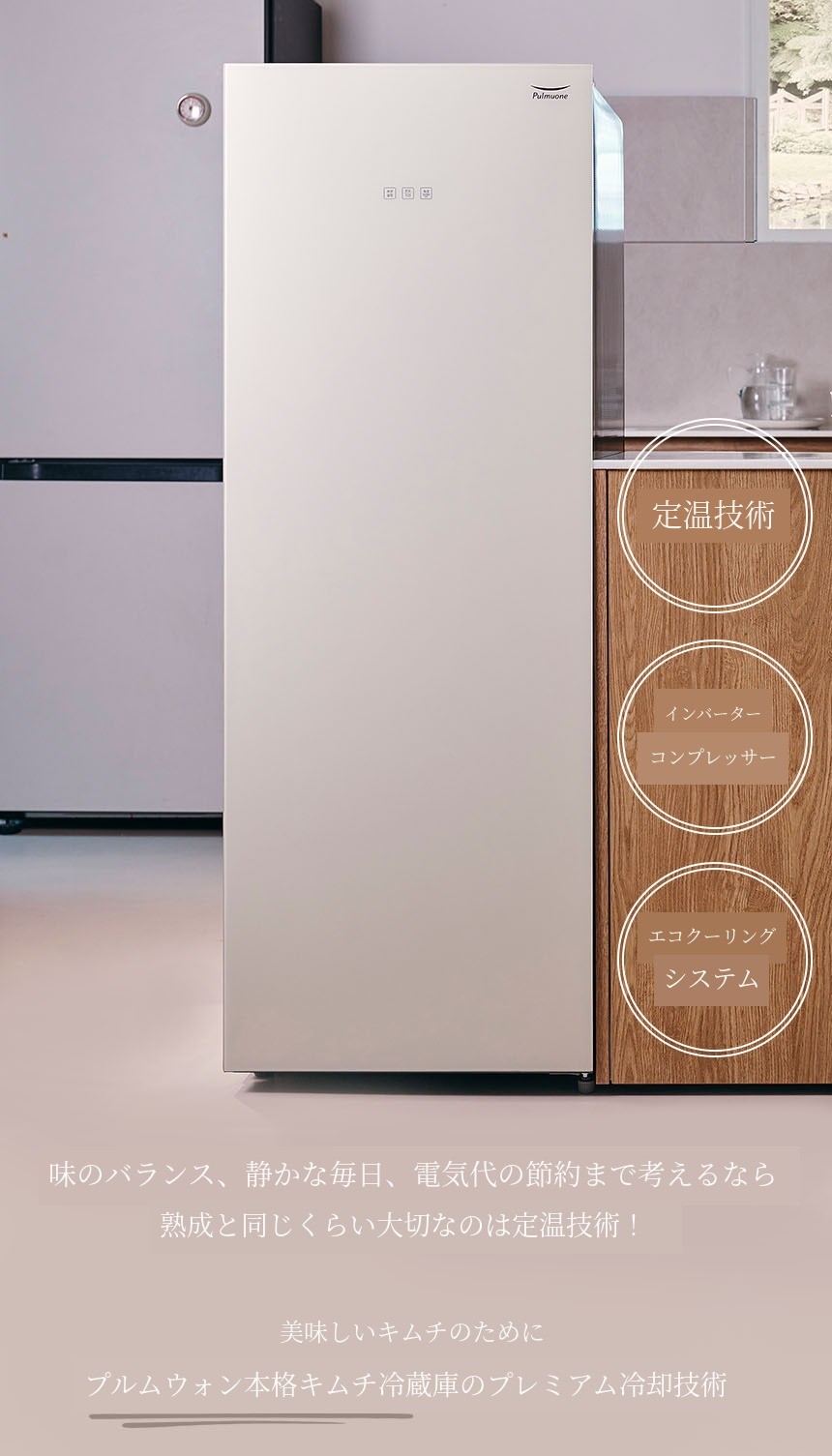 プルムウォンのキムチのノウハウをもとに、キムチをより美味しく熟成・保存できる冷蔵庫があったらどうかという思いから始まりました。また、キムチを保存しない時は様々な食材を新鮮に保存できる多目的冷蔵庫として活用できるよう設計し、季節や状況に応じて柔軟に使える正しい食材の保管庫を発売することになりました。