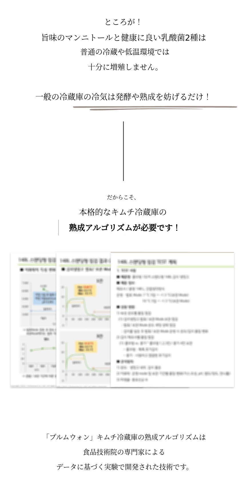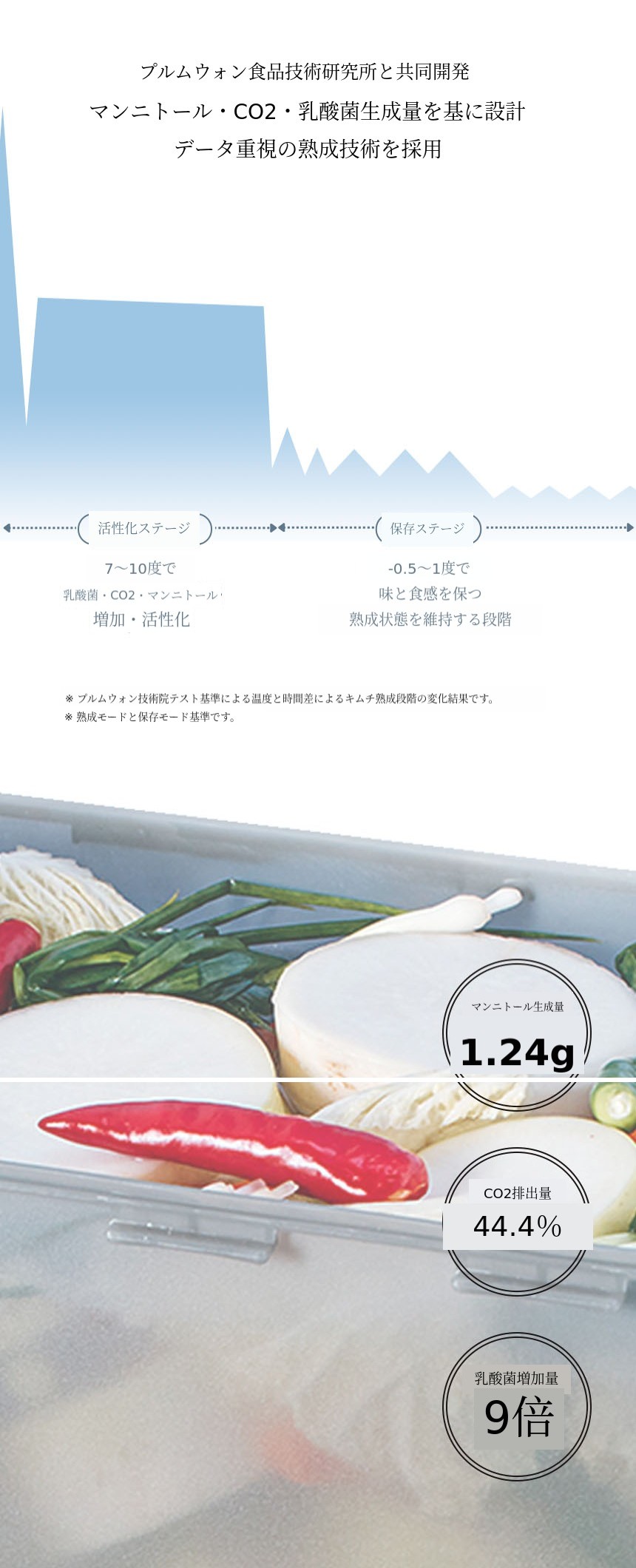 ※ 実験はプルムウォン技術院独自の研究基準であり、キムチの種類や使用環境によって差が生じる場合があります。