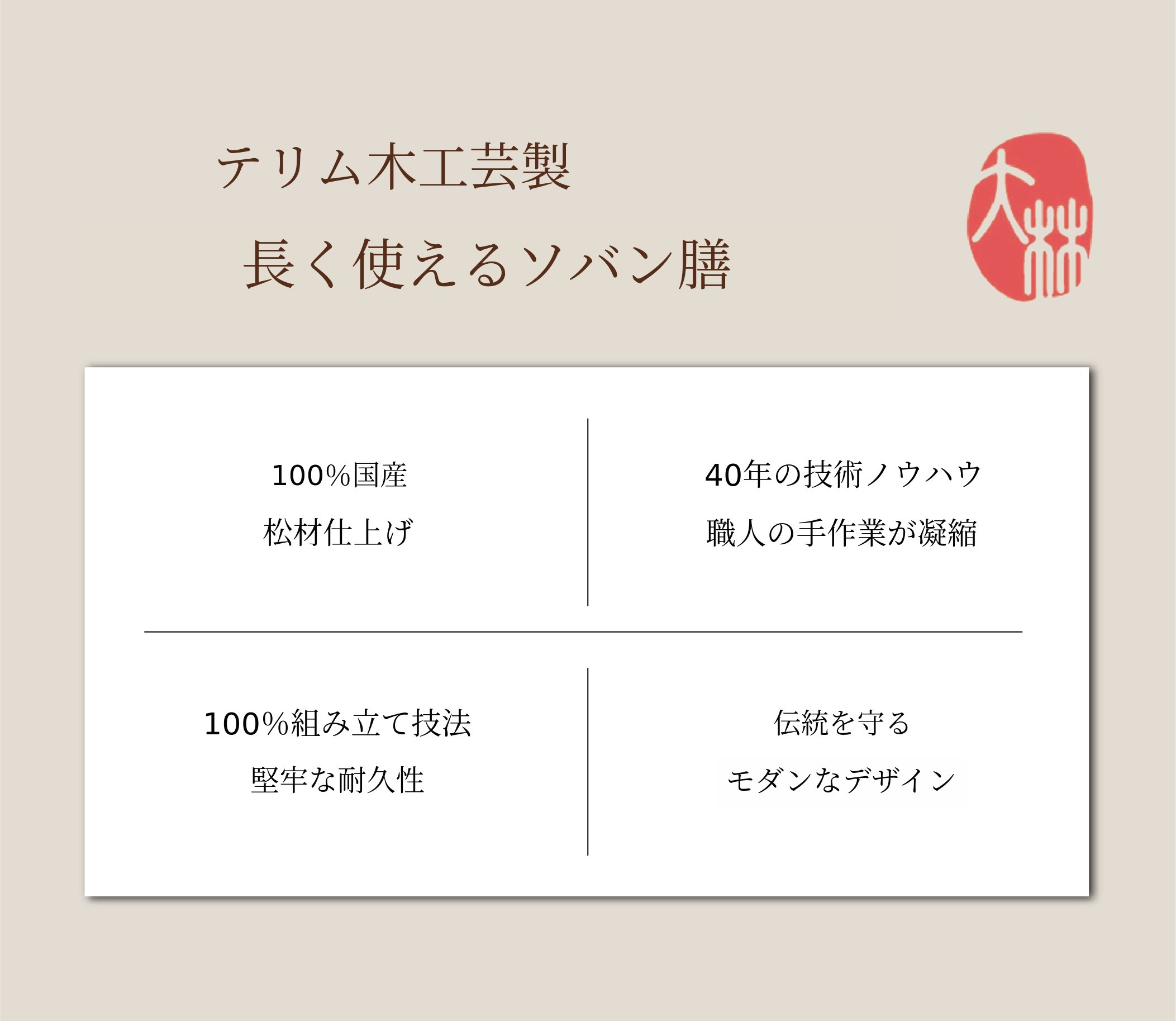40年の伝統とノウハウ、先端技術を通じて品質を高め、価格を抑えたテリム木工芸の木製品を、皆様に合理的な価格と美しいデザインでご紹介いたします。