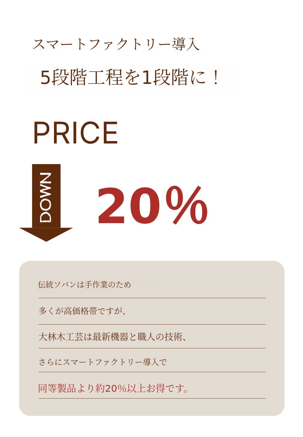 職人の精巧な手仕事と最先端設備を導入し、価格を抑えつつ品質は最高水準を維持し、お客様に最高の価値をお届けしたいと考えています。