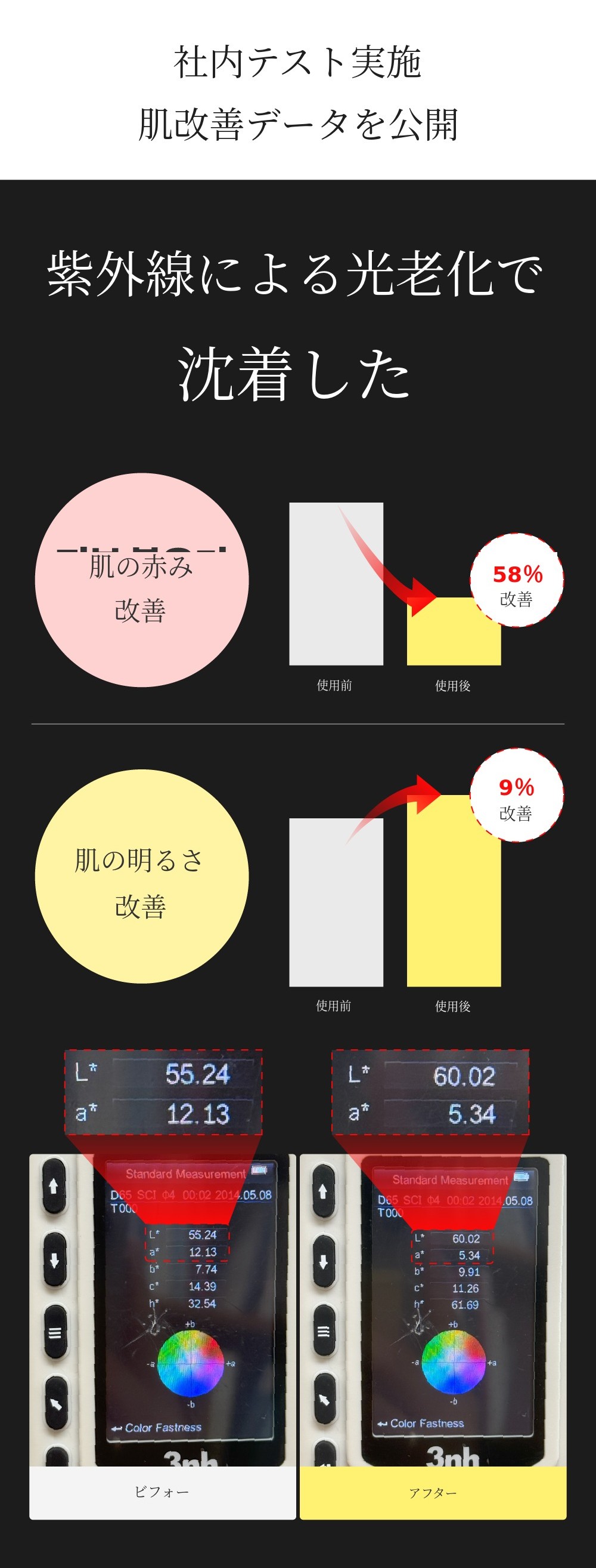 肌の美白回復はもちろん、光老化で刺激された肌 を