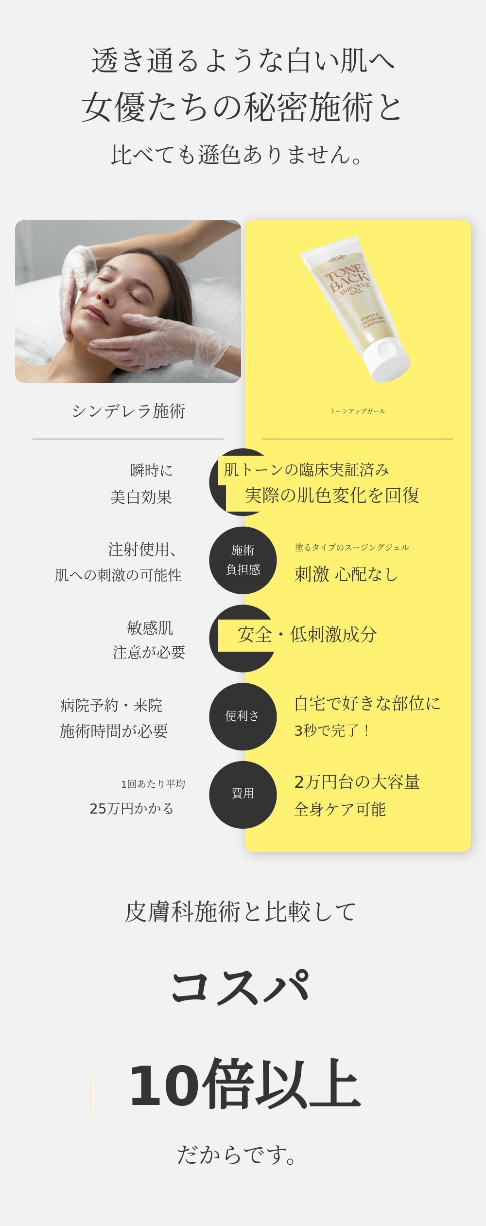 この一文からトーンバックアンプルジェルの開発が始まりました。