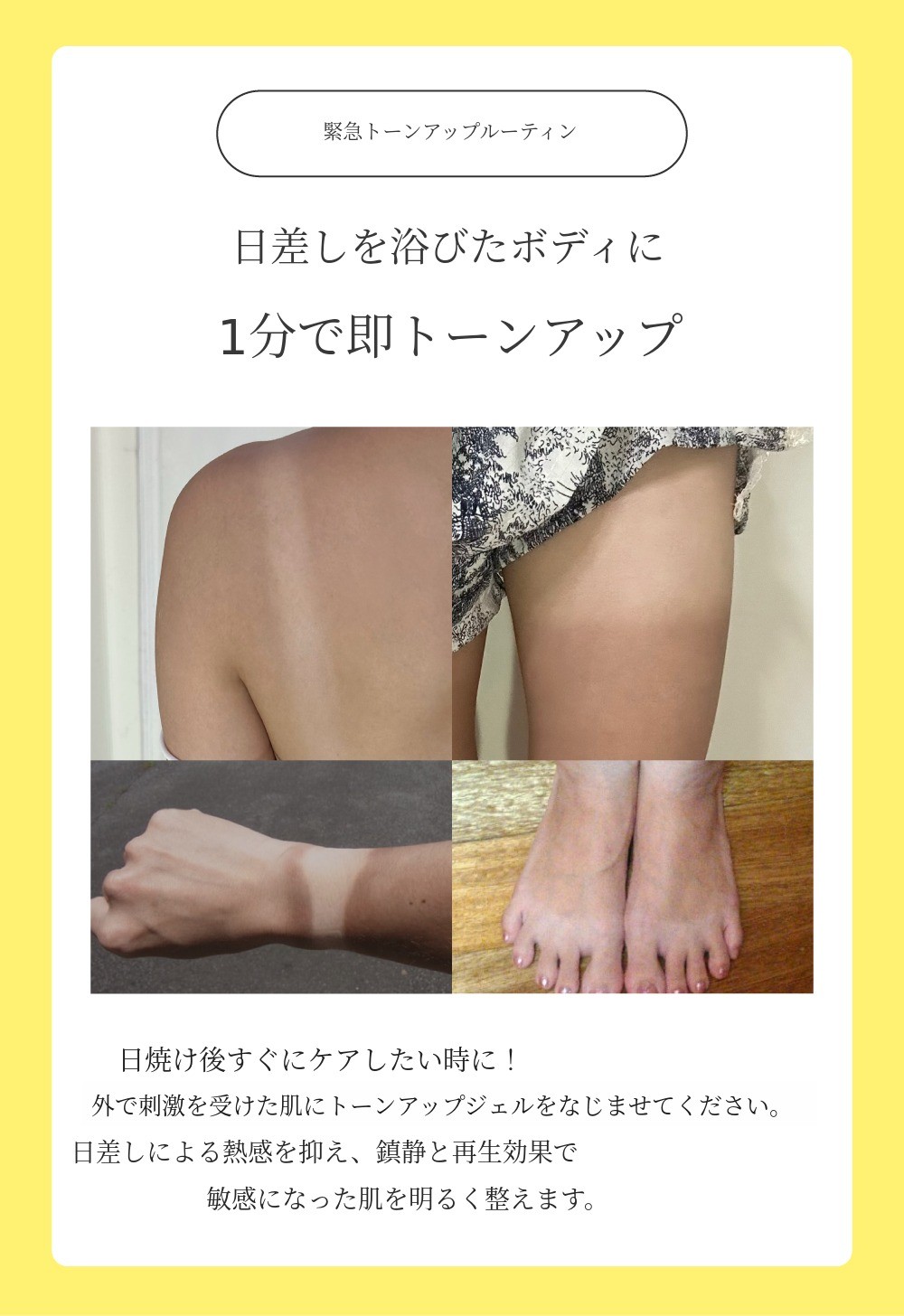トーンバックジェルなので、ボディのどこにでも使用できます。