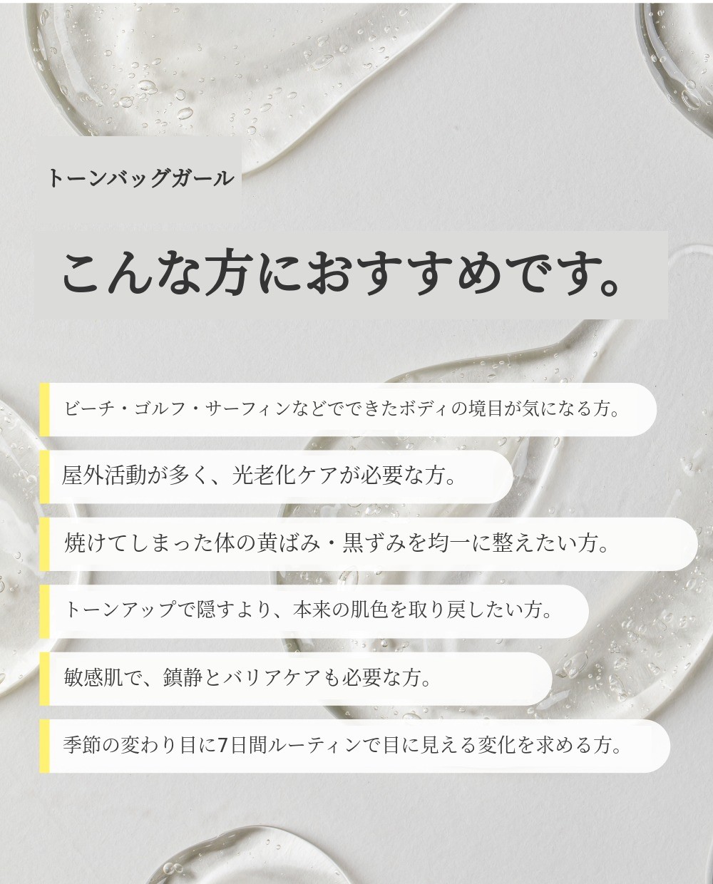 トーンバックジェルは単なる美白ローションではありません。
