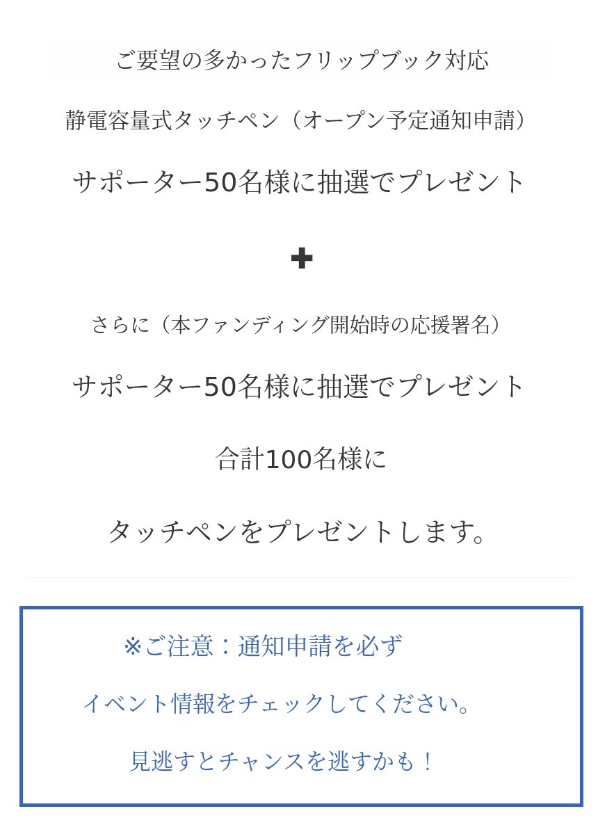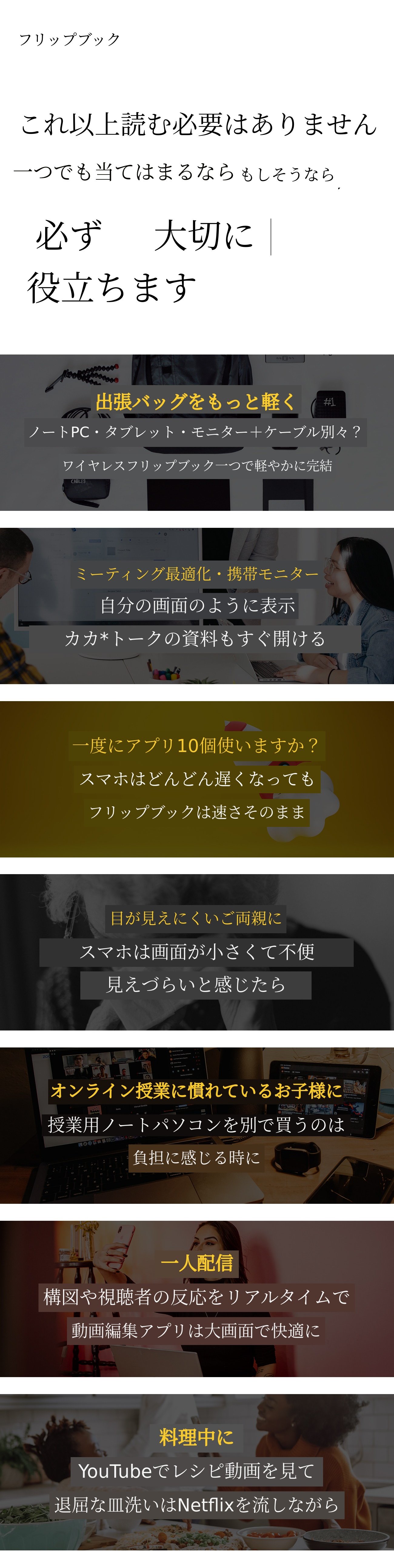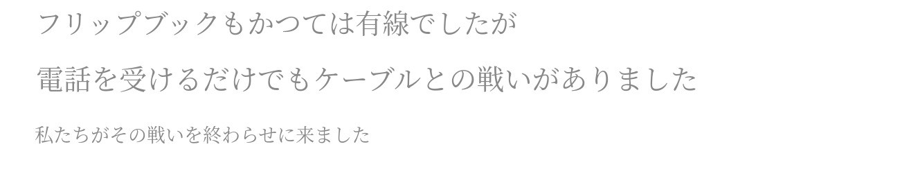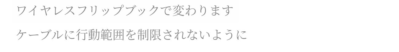 後悔いなく開発し最善を尽くして生産したフリップブックver.1ですが、それでも心のどこかに残る物足りなさの原因は「有線」という限界から来ていたのでしょう。そしてフリップブックver.1を使った方々は、その物足りなさを見抜いていました。