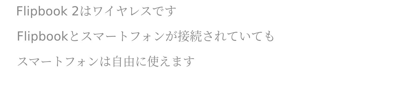 フリップブックはスマートフォンとワイヤレス接続中に他のアプリを開いたり電話を受けても画面が途切れません。 まるで完全に独立した存在のように動くので「本当にスマートフォンと接続しているの?」と混乱するかもしれませんが、実はワイヤレスでしっかりと接続されているのです。