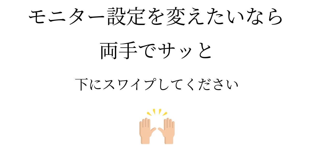フリップブックを使いながら、いつでも両手でモニターをなぞってみてください。自分がいる空間の環境や照明に合わせて、下記の設定を変更できるメニューが表示されます。