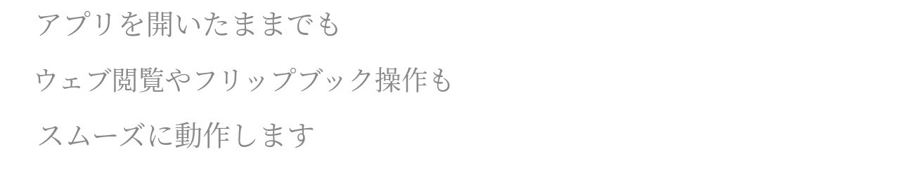 最近遅くなったと感じて、ご両親が渡してくれたスマートフォンにはアプリが10個、20個も開いていることがあります。フリップブックではこんなことはありません。いくつアプリを開いても、速度はそのままです。