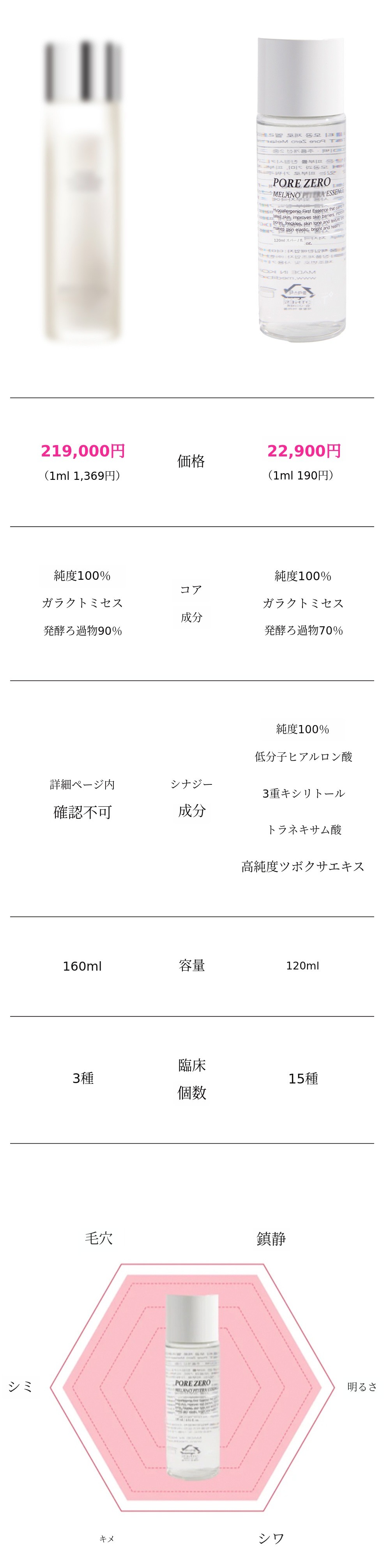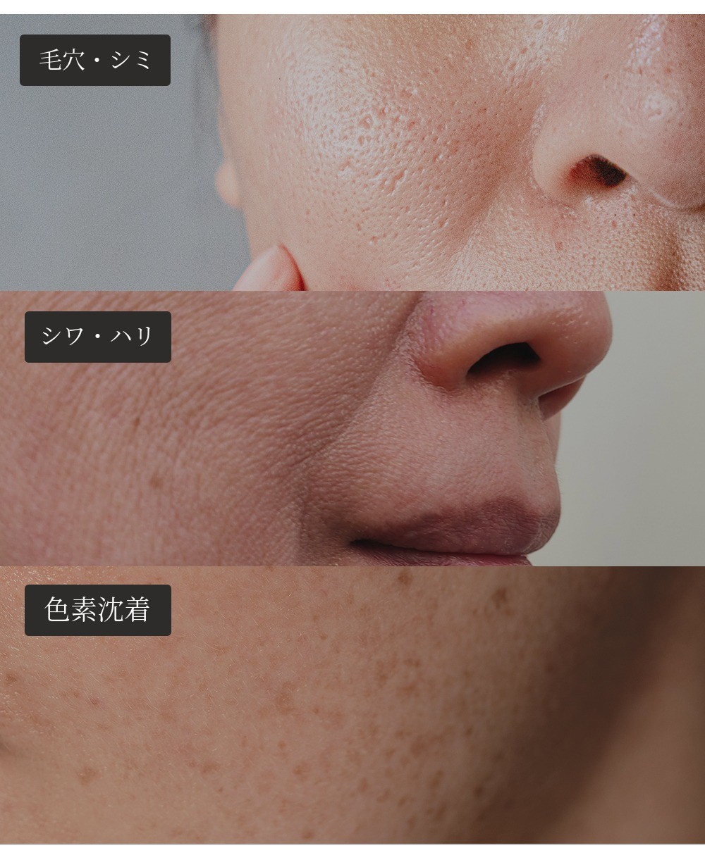 毛穴、シミ、肌の明るさ、肌のキメ、シワ、鎮静